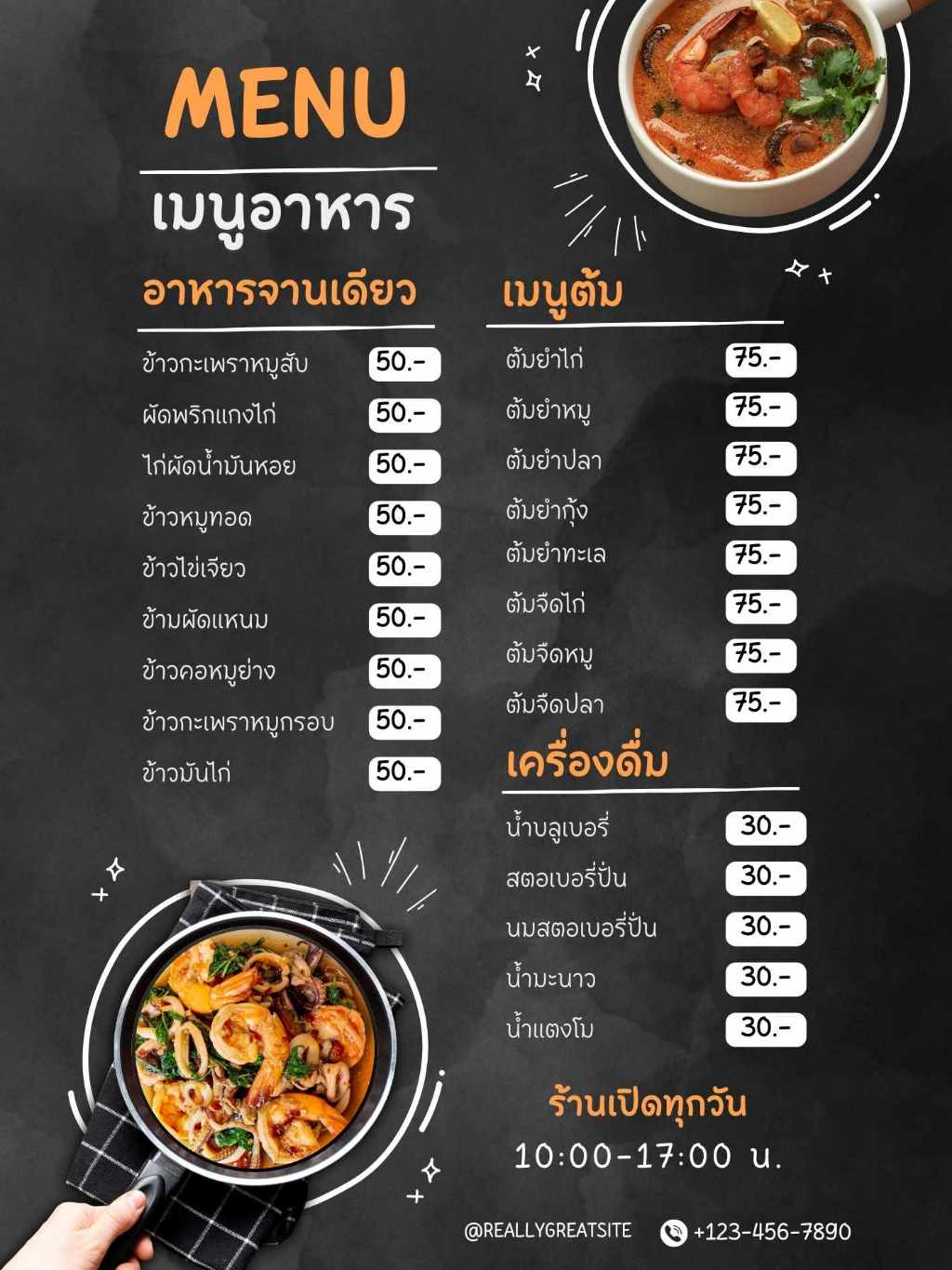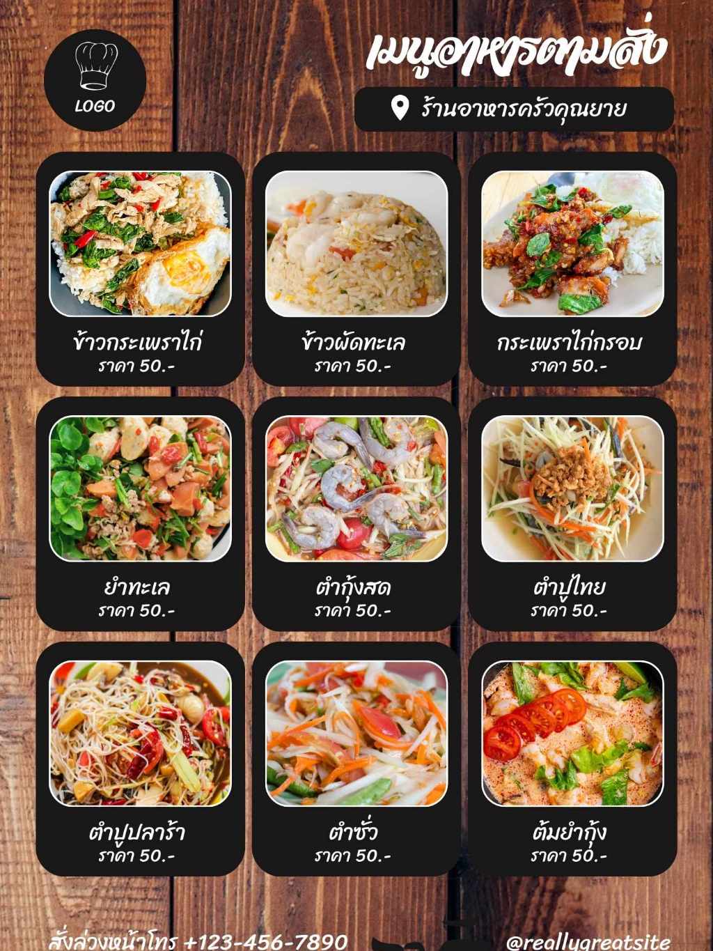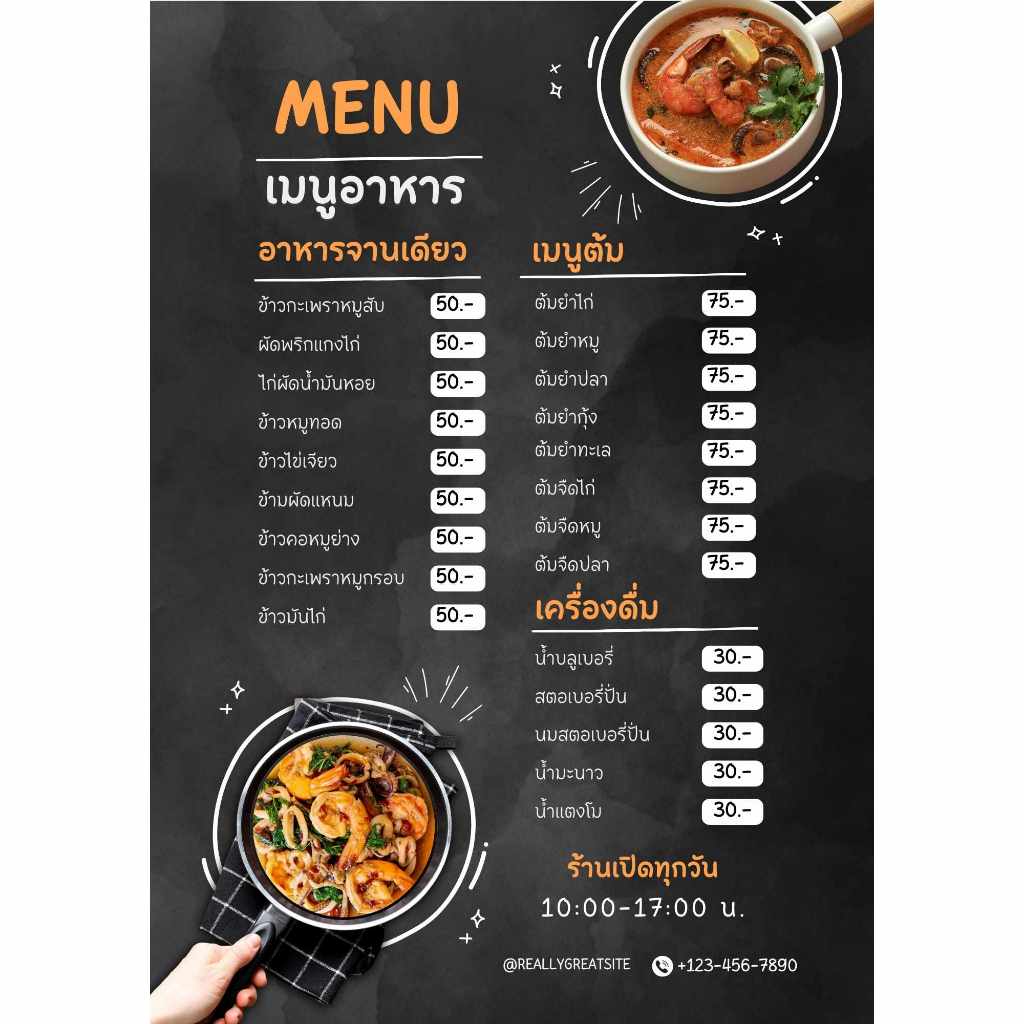 ป้ายเมนูอาหารตามสั่ง/ป้ายเมนูอาหารA4เคลือบแข็ง/พลาสวูด 3มิลA4,A3 ทักแชทก่อนกดสั่ง(สามารถแก้ไขรายการเมนูได้)