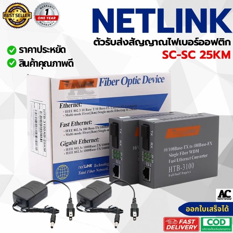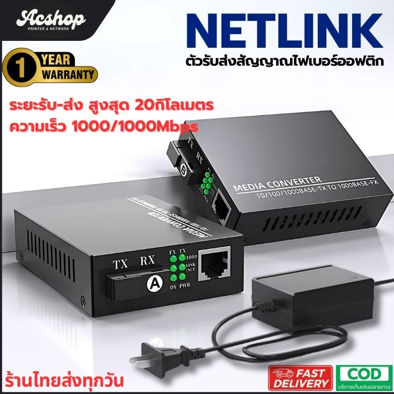 Media Converter 20KM Gigabit HTB-GS-03A/B Single Mode SC Fiber (2ตัว A+B)