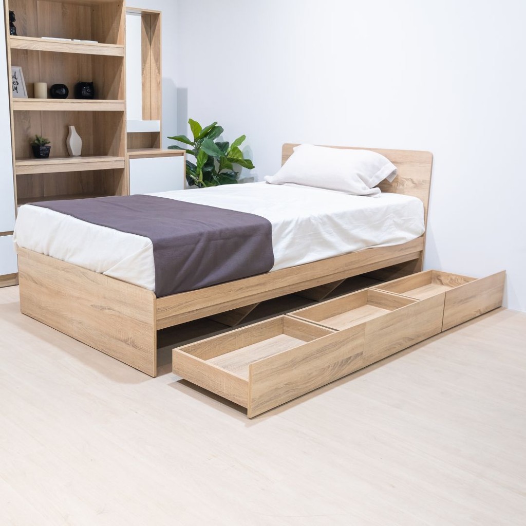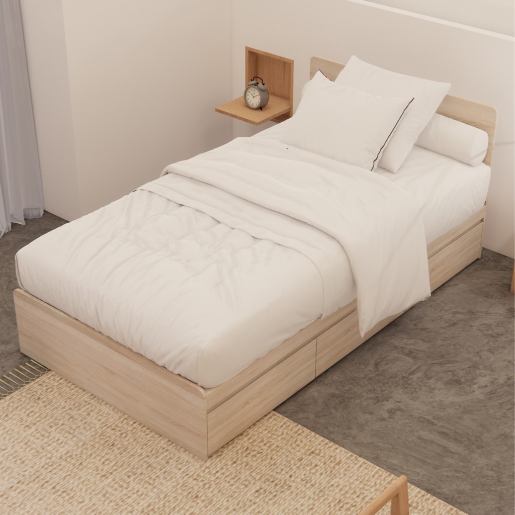 Looms เตียงนอน ขนาด 3.5 ฟุต รุ่น PERCY สีโซลิดโอ๊ค (110x203x80 ซม.) แบรนด์ LOOMS