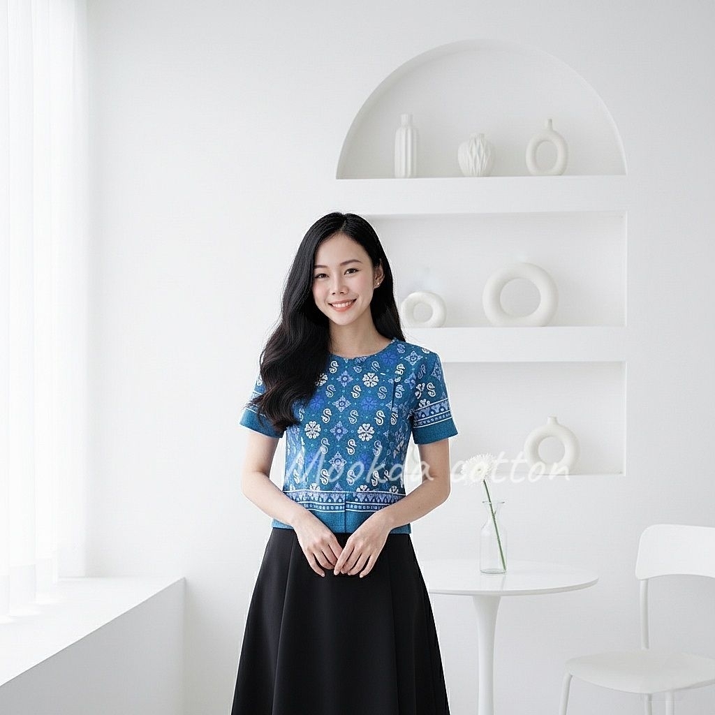 เสื้อคอกลมอัดกาวกระดุมป้าย ลายดอกรักพระราชทาน