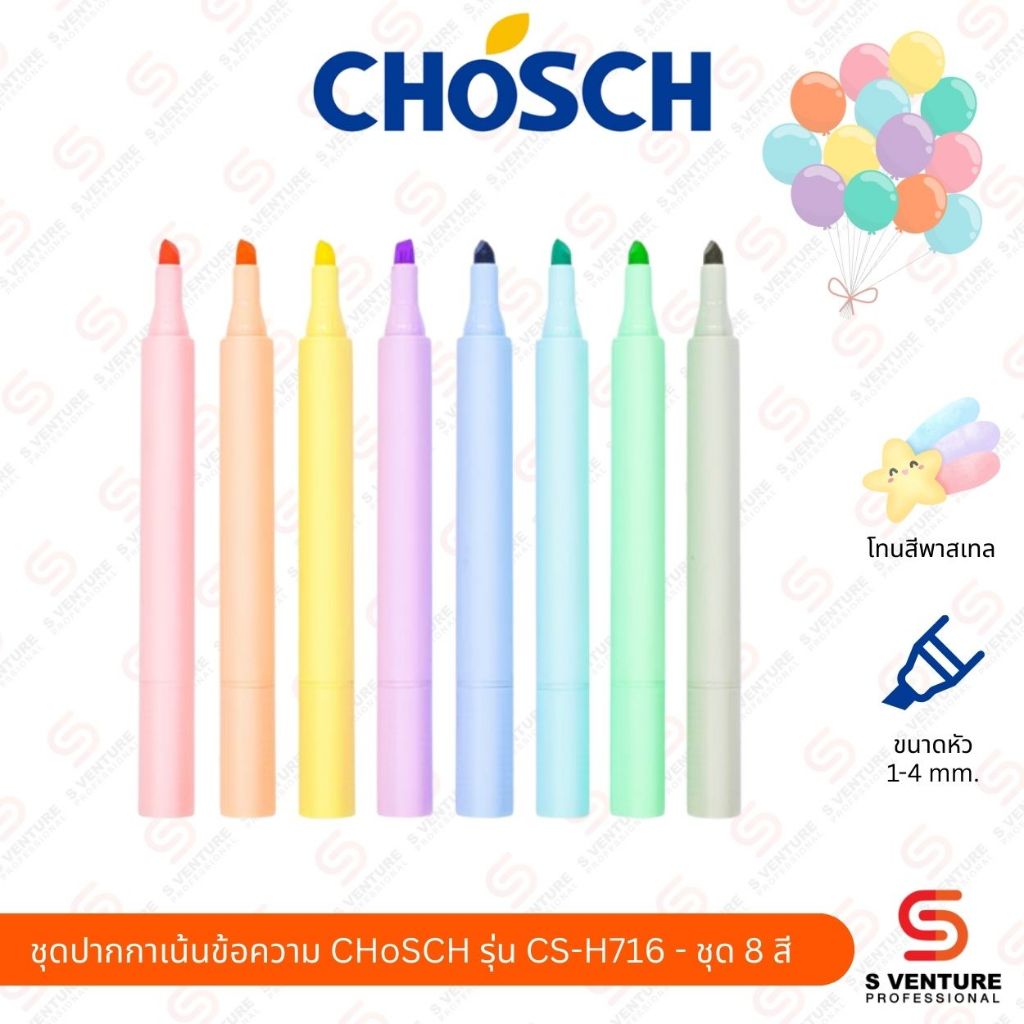 ชุดปากกาเน้นข้อความ สีพาสเทล Chosch CS-H716 ชุด 8 สี