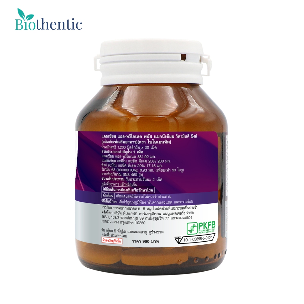 แคลเซียม แอลทรีโอเนต x 1 ขวด แมกนีเซียม วิตามินดี ซิงค์ ไบโอเธนทิค Calcium L-Threonate Vitamin D Biothentic