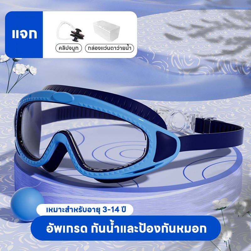 [สำหรับเด็กอายุ 2-16 ปี] แว่นตาว่ายน้ำเด็ก+หมวกว่ายน้ำเด็ก ว่ายน้ํา ชุดแว่นตา ป้องกันแสงแดด UV ไม่เป็นฝ้า ปรับระดับได้