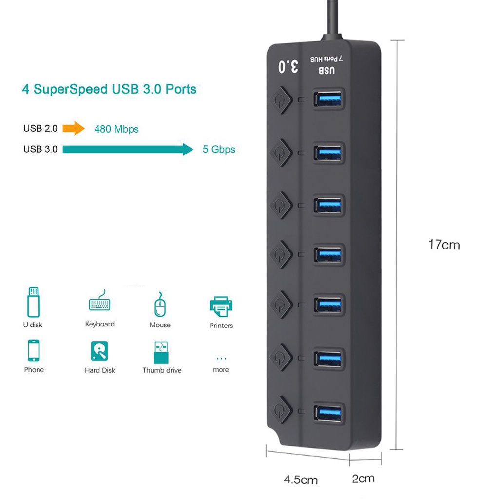 อะแดปเตอร์ฮับ USB 3.0 7 พอร์ต USB 3.0 5Gbps แบบพกพา สําหรับแล็ปท็อป PC