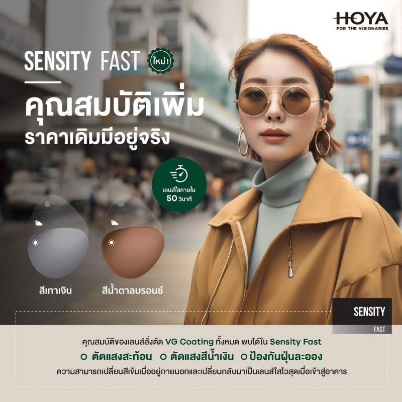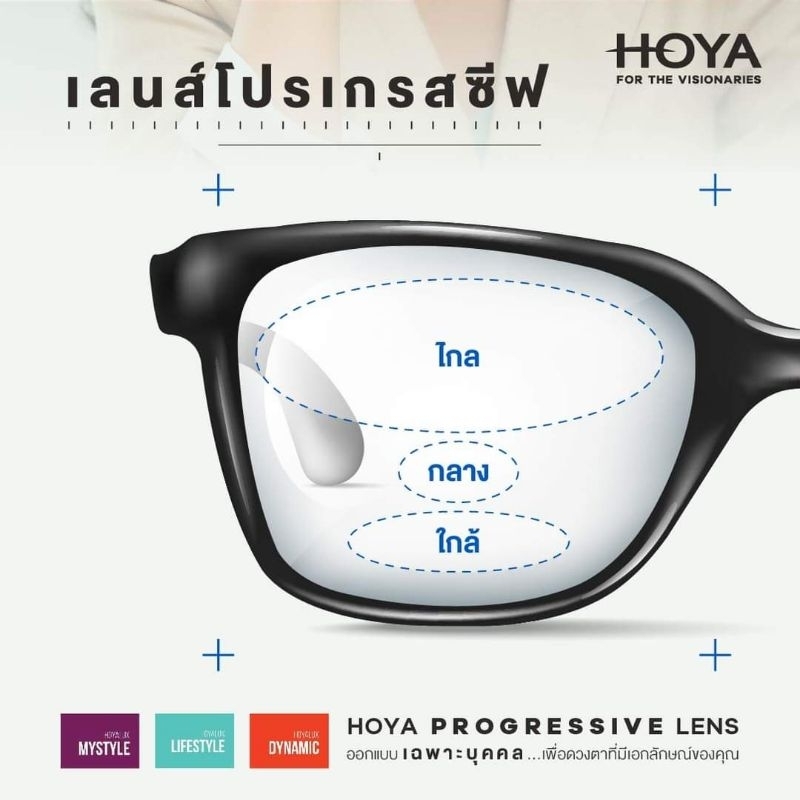 เลนส์1.50/1.60โปรเกรสซีฟ Hoyaรุ่นDynamic/Premiumเปลี่ยนสีSensity2/Darkพร้อมใบรับประกัน