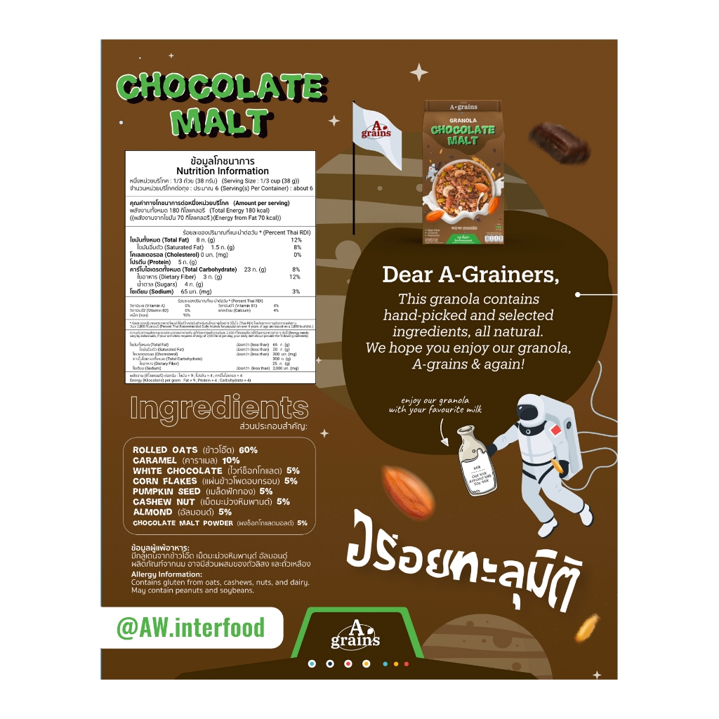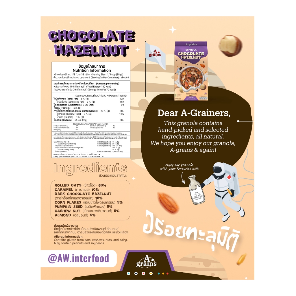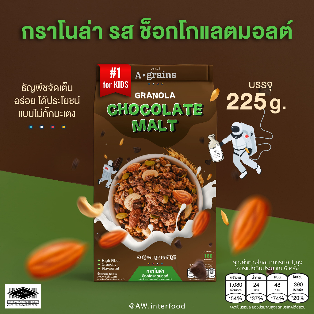 อะเกรนส์ กราโนล่า อร่อยคุ้มเกินต้ าน ขนาดถุงละ 225g. (เลือกรสทื่ตัวเลือก)