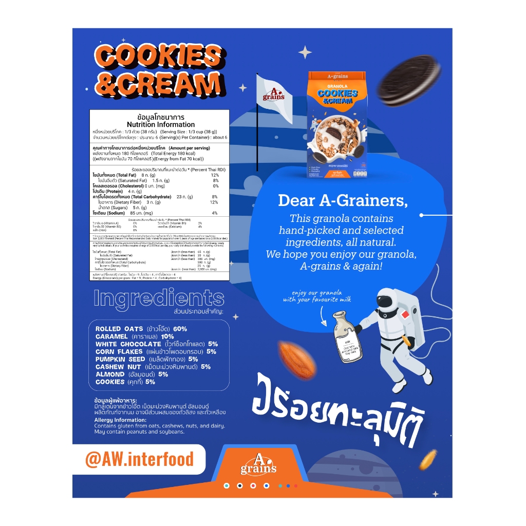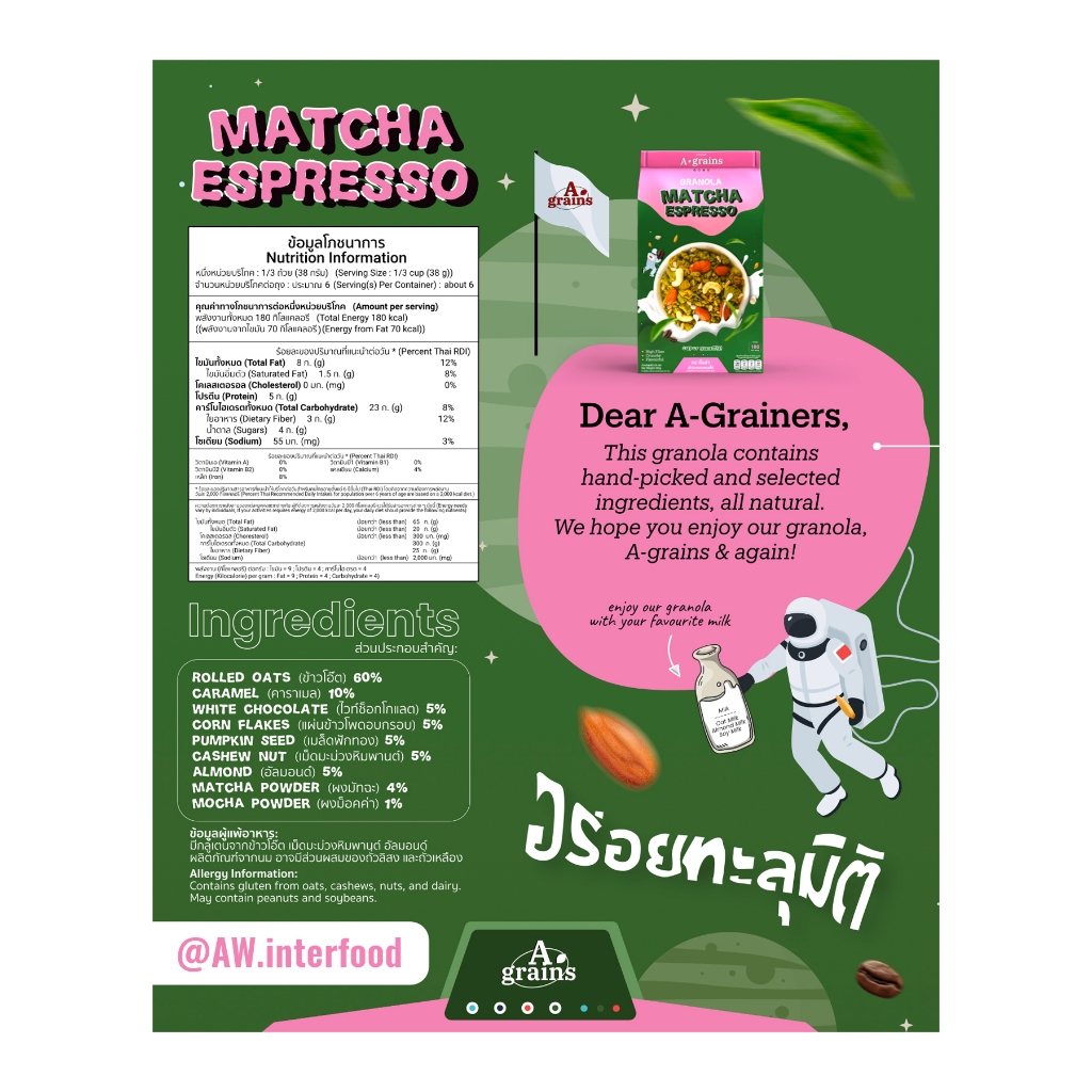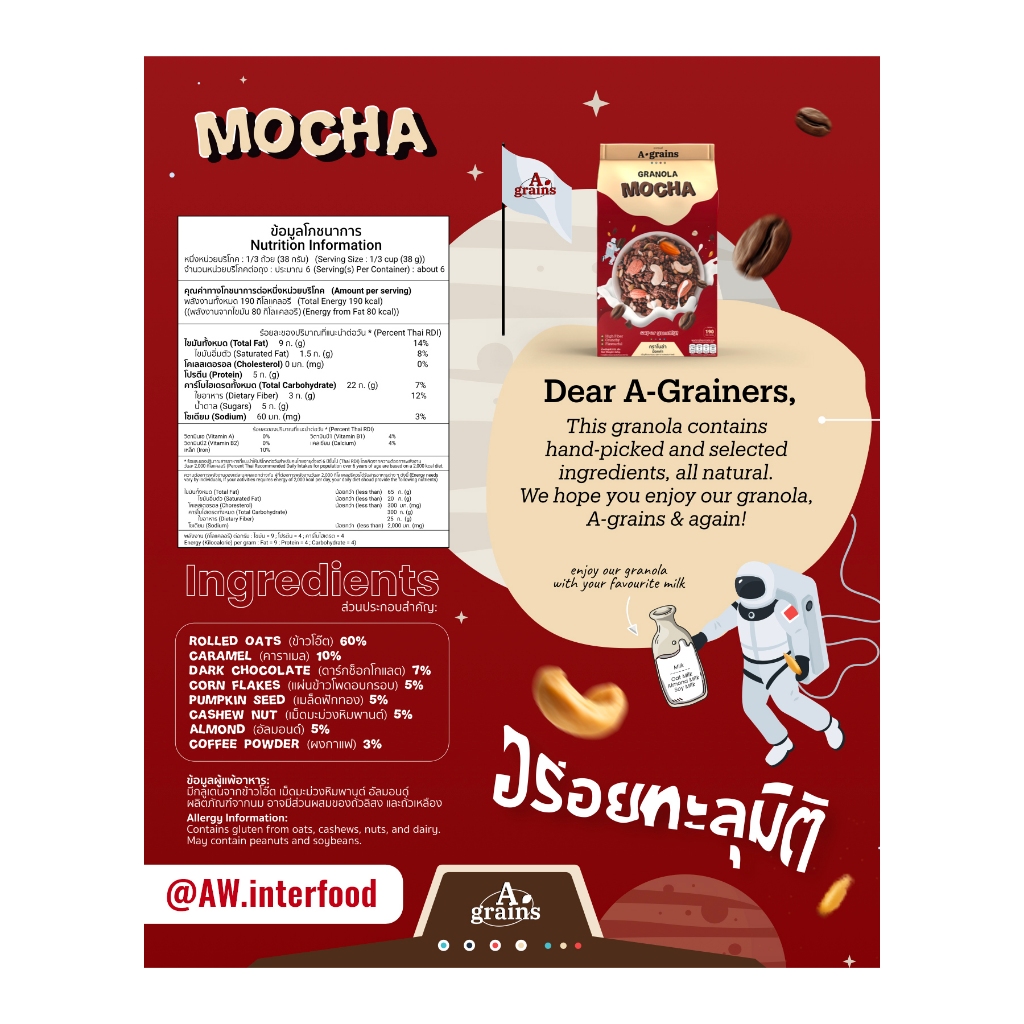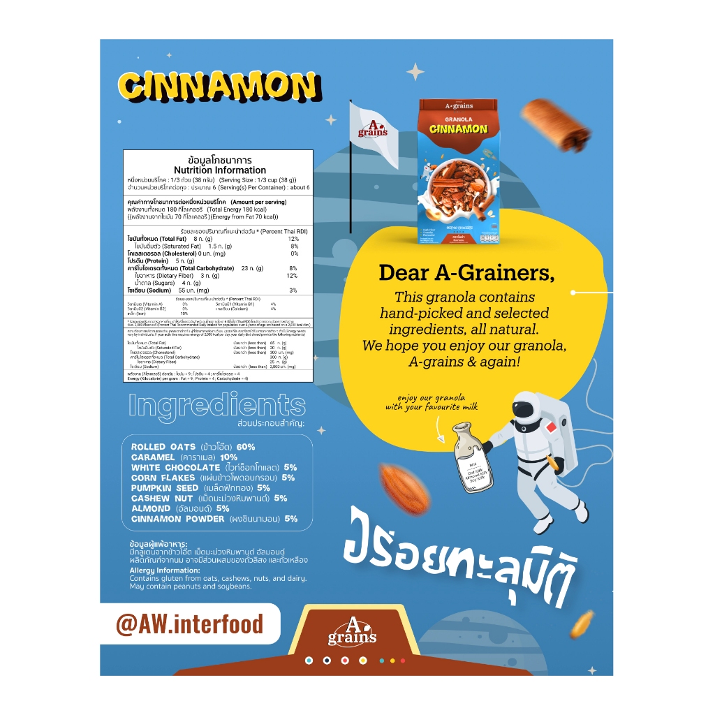 อะเกรนส์ กราโนล่า อร่อยคุ้มเกินต้ าน ขนาดถุงละ 225g. (เลือกรสทื่ตัวเลือก)