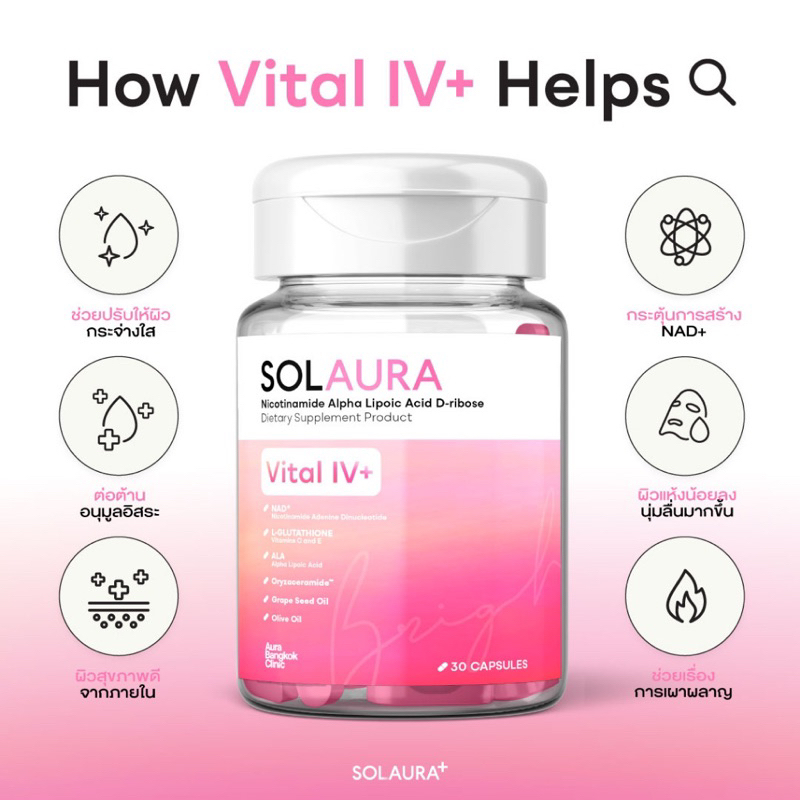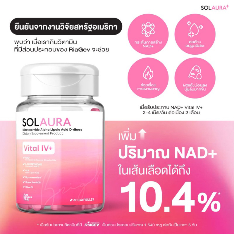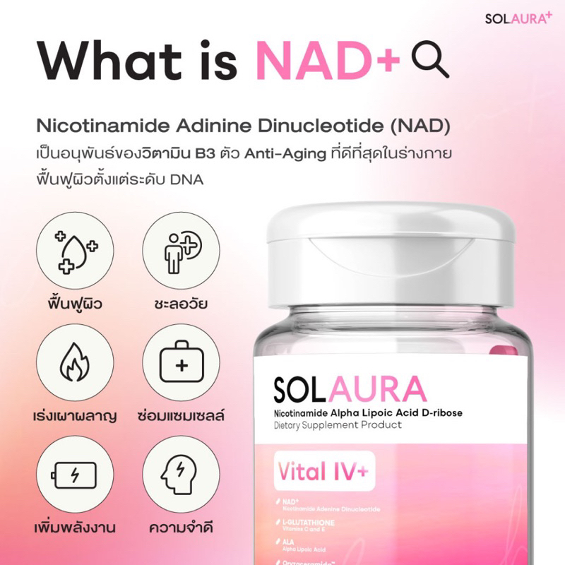 Solaura(โซลออร่า) - NAD+ Vital IV+ วิตามินดริปผิวตัวดังในรูปแบบเม็ด 30 เม็ด