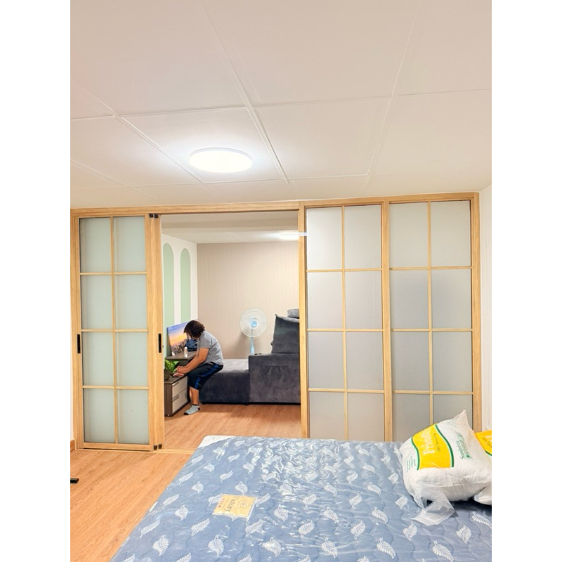 (🔥ถูกที่สุด🔥)YT💥กั้นห้องกระจกสไตล์มินิมอล ลายไม้