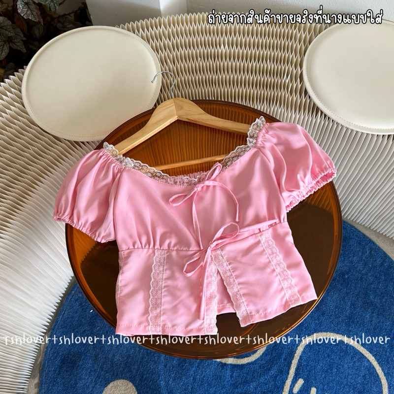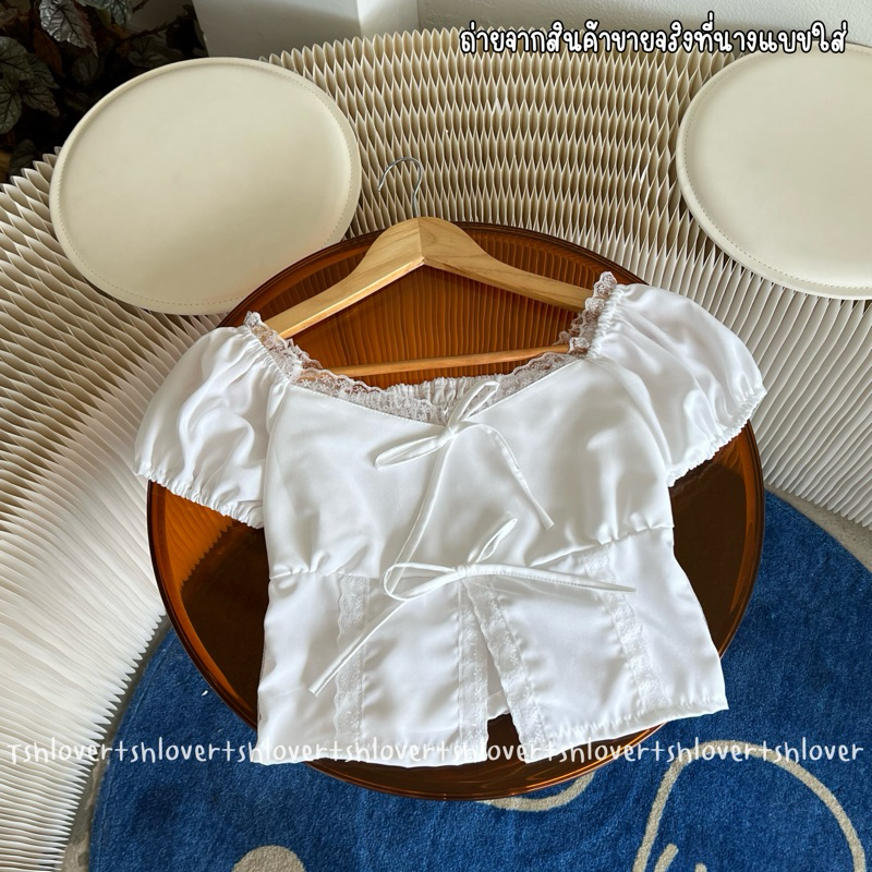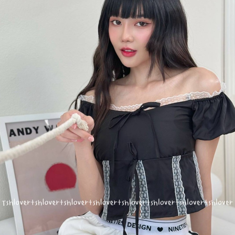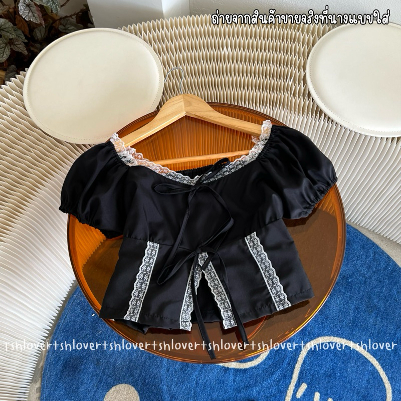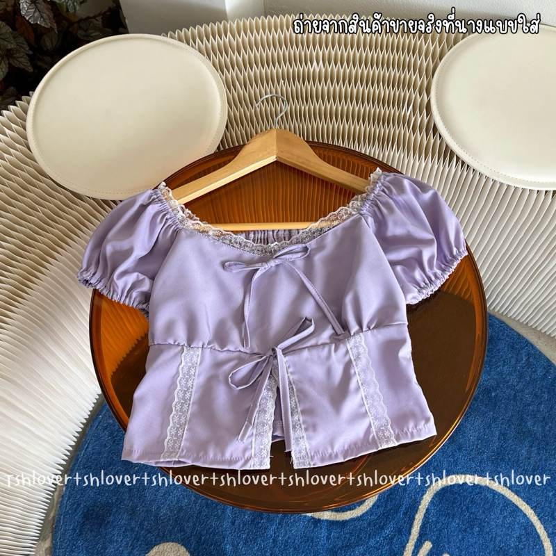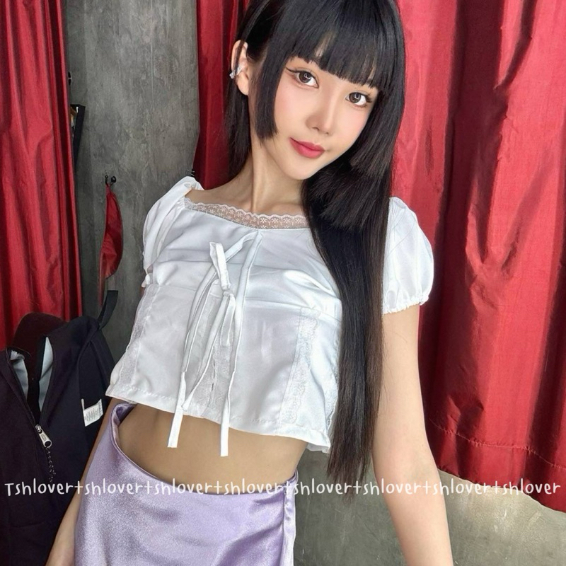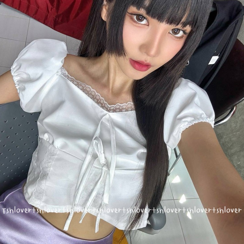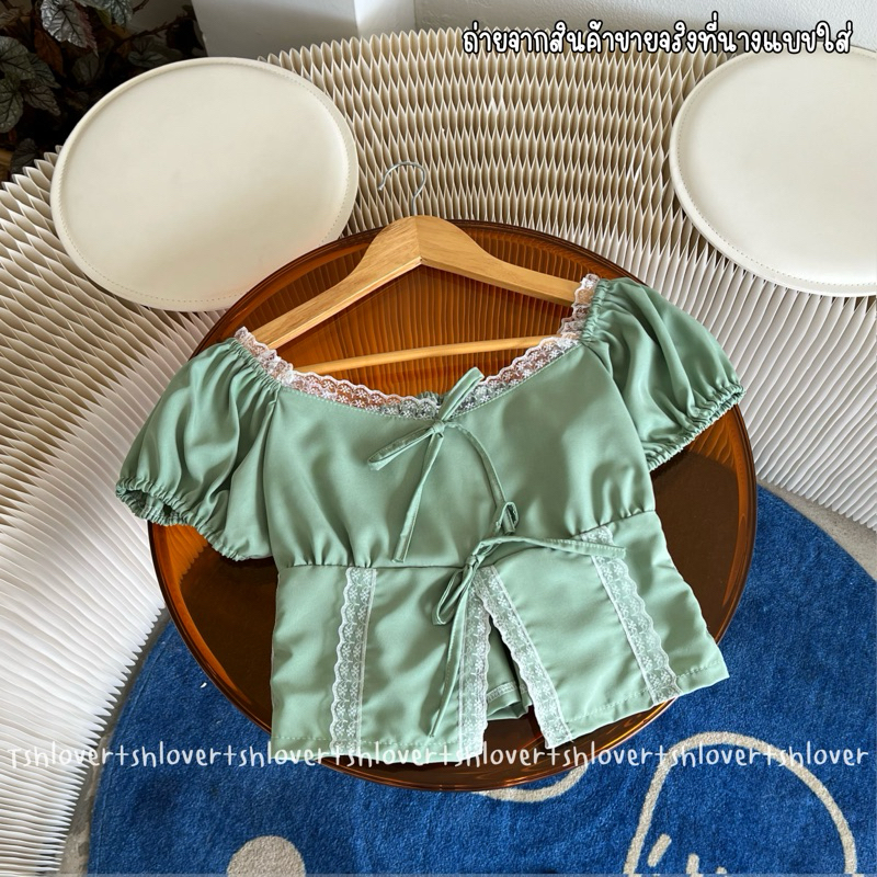 (VDO ลด50%) 🎉 พร้อมส่ง 7 สี มีซับใน‼️💕 ครอปแขนตุ๊กตา ครอปแต่งลูกไม้ เสื้อเวียดนาม ครอปลูกไม้ผ่าหน้า