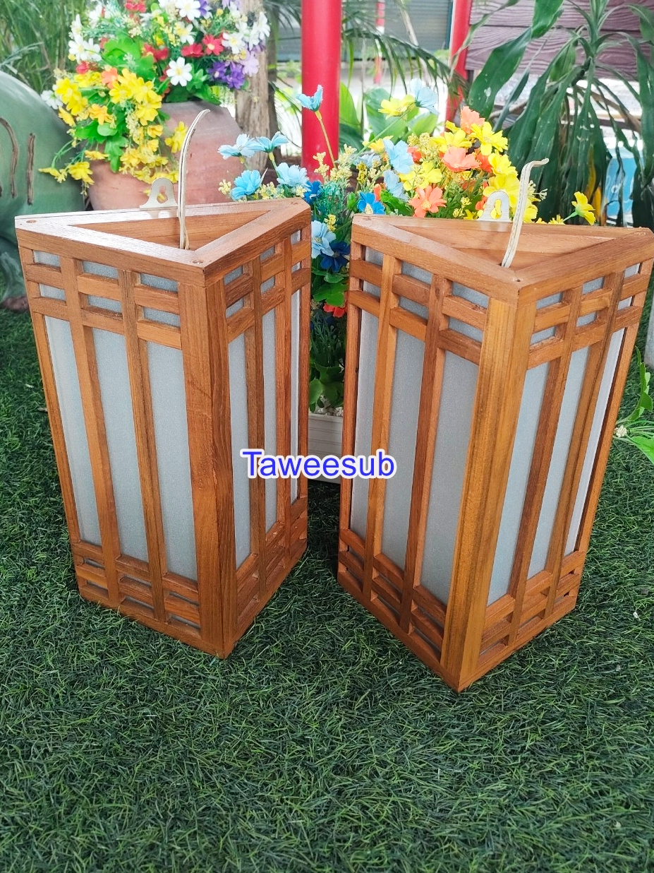 โคมไฟไม้สัก โคมไฟสามเหลี่ยมญี่ปุ่นกระจกฝ้า โคมสามเหลี่ยมญี่ปุ่น ราคาถูก จัดส่งเร็ว ขนาดกว้าง15 cm ยาว20cm สูง32cm