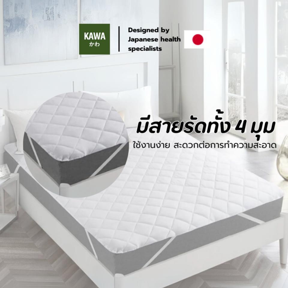 Kawa ผ้ารองที่นอนกันน้ำ100%เนื้อผ้าหนา นุ่ม สบายผิว ระบายอากาศได้ดี มีสายรัดทั้ง 4 มุม สะดวกต่อการใช้งาน กันน้ำกันไรฝุ่น