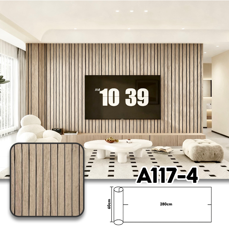 PAUS BIRU วอลเปเปอร ์ลายไม้ระแนง ติดตั้งง่าย มีกาวในตัว สติ๊กเกอร์ติดผนัง วอลเปเปอร์ติดผนัง
