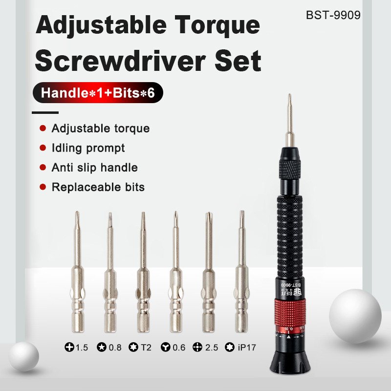 BST-9909 ชุดไขควงแรงบิดปรับได้เจ็ดในหนึ่งสําหรับเครื่องมือบํารุงรักษาโทรศัพท์มือถือ IP17 Android หางไขควงถอดชิ้นส่วนข้าม