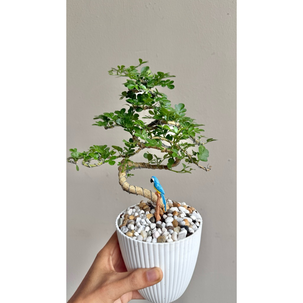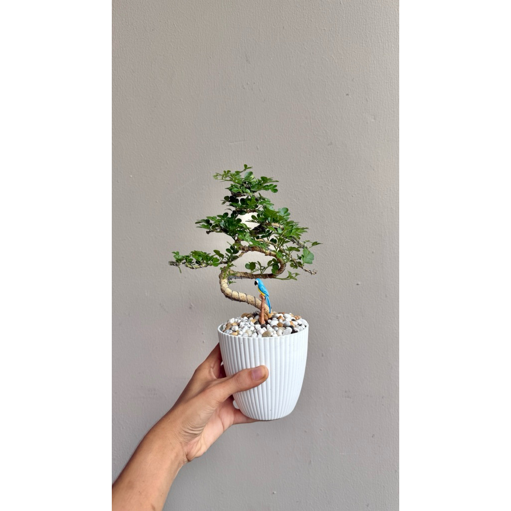 กระถางขาว บอนไซมะสัง พร้อมของตกแต่ง