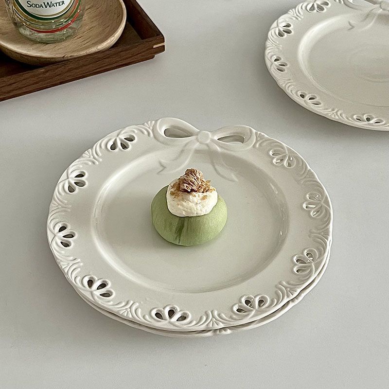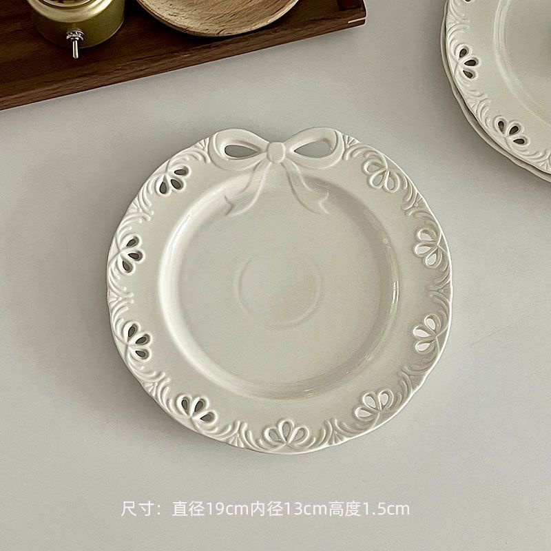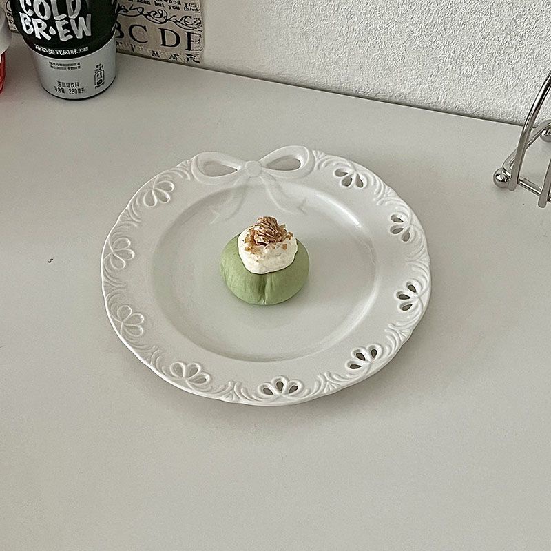 [พร้อมส่ง] จานเซรามิค ประดับโบว์ สไตล์ตะวันตก สําหรับใส่อาหารเช้า ขนมหวาน
