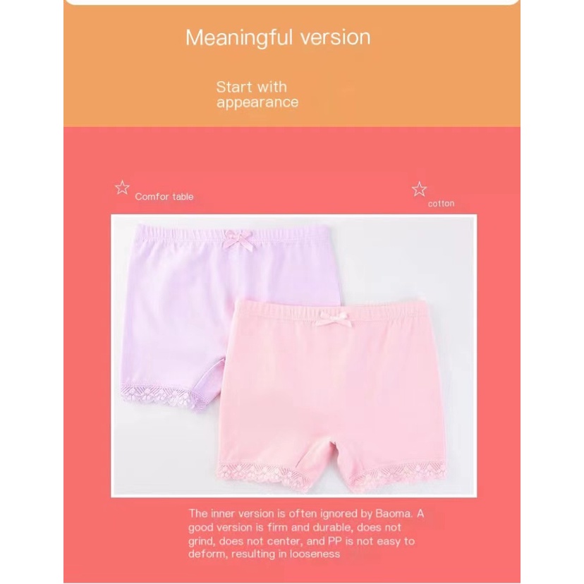 3 ชิ้น ผ้าฝ้ายแท้ กางเกงในเด็กกางเกงแบนสำหรับสาว ๆ