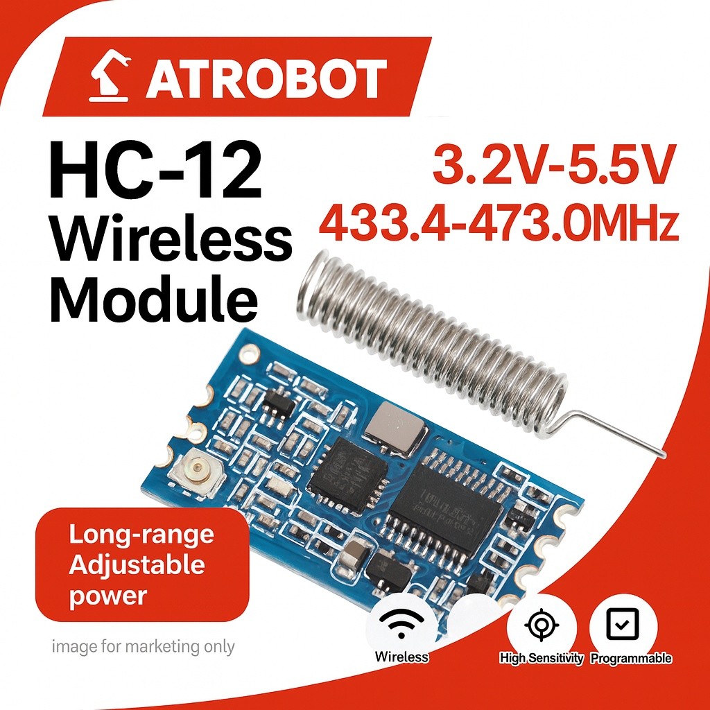 HC-12 SI4463 433MHz Wireless Serial Module, 1000m Range, 100mW, 3.2-5.5V, 100 Channels, AT Command, 27.8x14.4x4mm