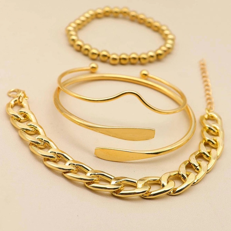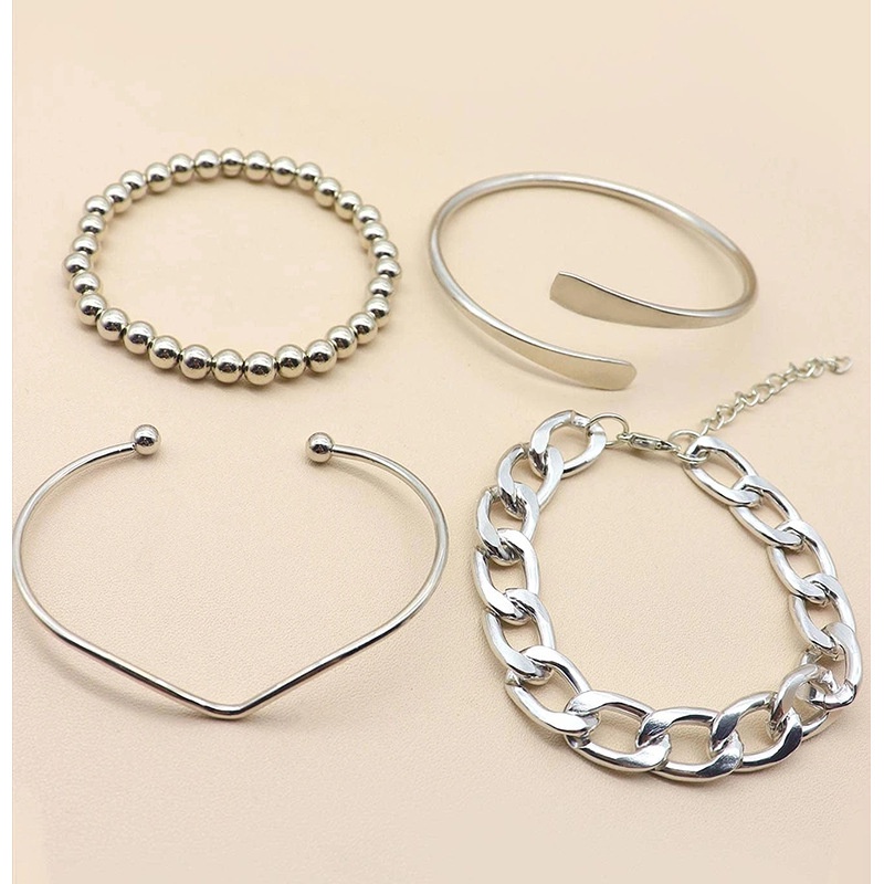 4 ชิ้น พังก์ เกินจริง สร้อยข้อมือโซ่หนา ขนาดใหญ่ สําหรับผู้หญิง ย้อนยุค เรขาคณิต โลหะ ไขลาน แวววาว กําไลข้อมือ เครื่องประดับ