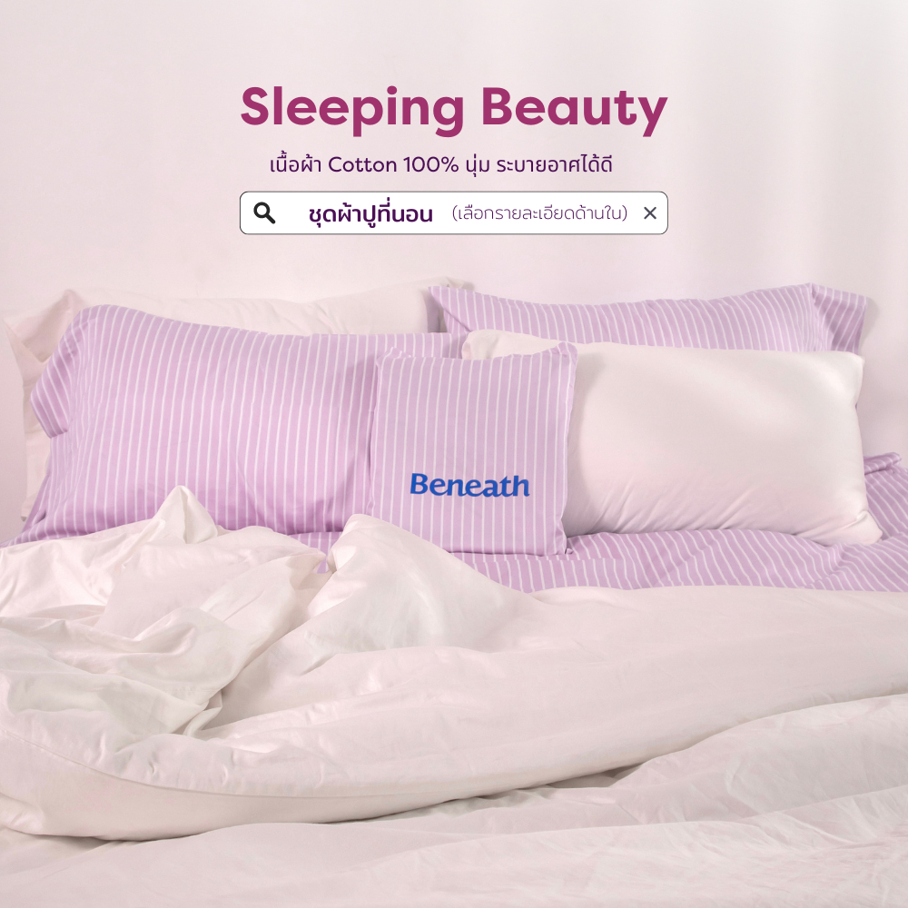 ชุดผ้าปูทีนอนสี Sleeping Beauty | 100% Single-Ply Cotton ไม่ติดขนแมว Beneath Luxury Bedding
