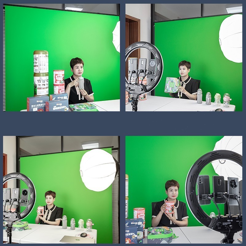 ✅【ฉากกรีนสกรีนแบบม้วนเก็บได้】ขนาด 150x200cm | พร้อมขาตั้งกล้อง & ไฟสตูดิโอ ✅