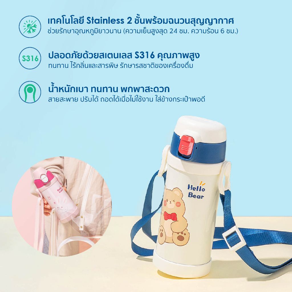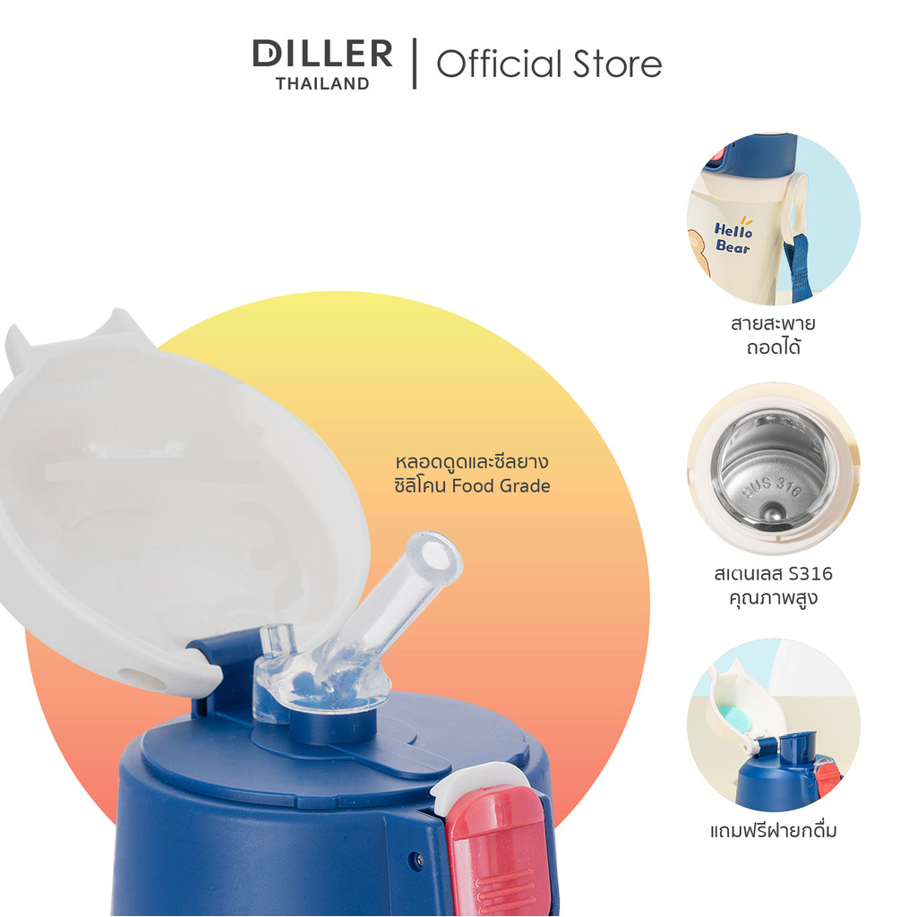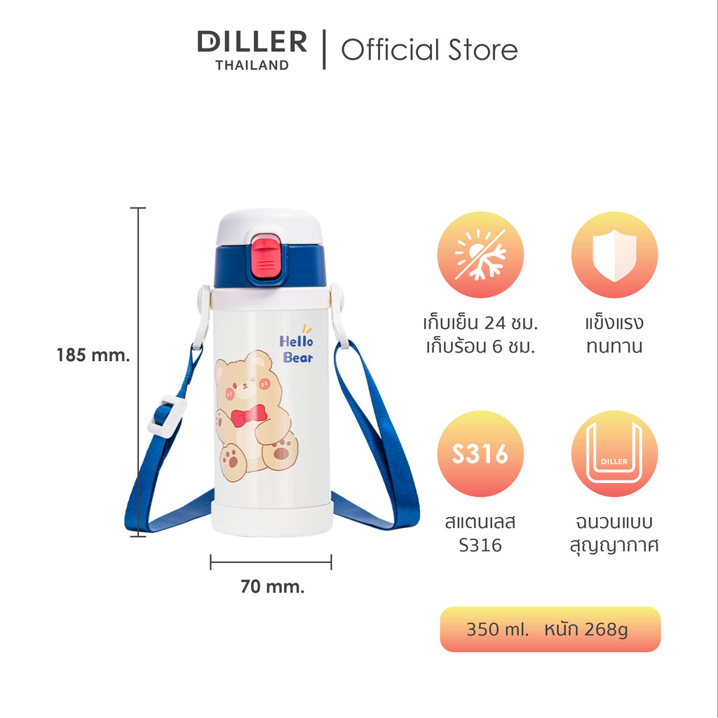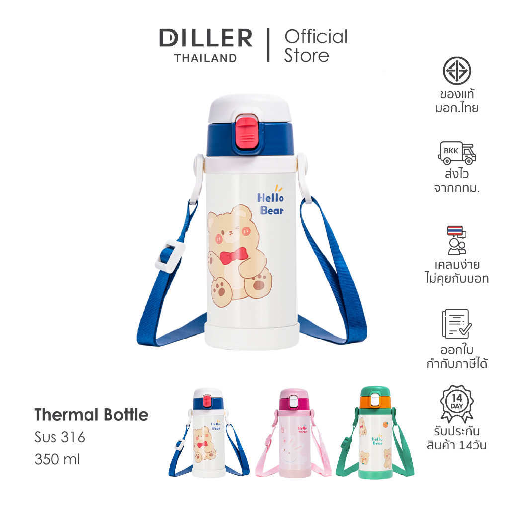 Diller Thailand Thermo Flask 350ml MLH9091 ขวดน้ำเด็ก ขวดน้ำไปโรงเรียน กระติกน้ำสุญญากาศ เก็บความเย็น-ร้อน ส่งจากกทม.