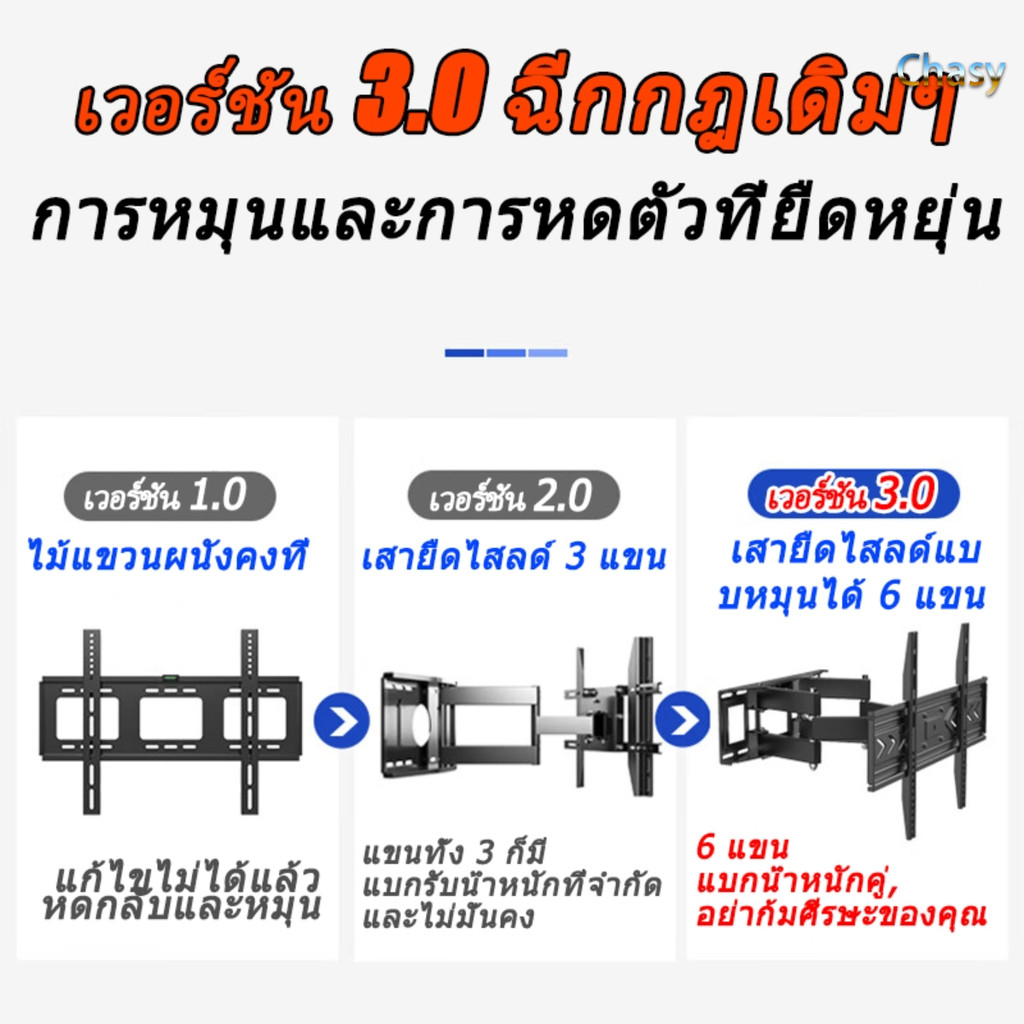 Chasy ขาแขวนทีวี ขนาด 26-55 นิ้ว (ติดผนัง, ปรับยืด-หดได้, ปรับก้มได้) มีสินค้าพร้อมส่ง คะแนน 205