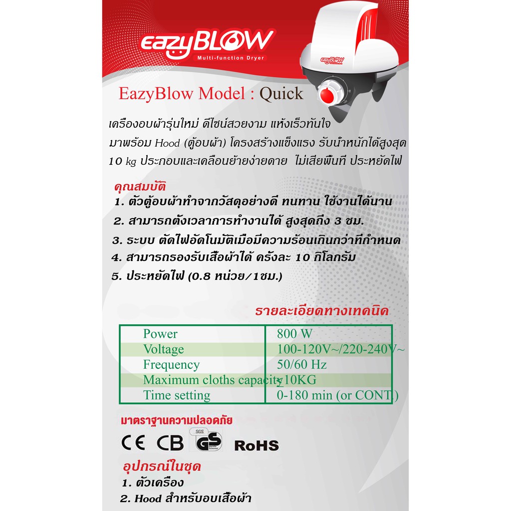 EazyBlow เครื่องอบผ้า แห้งเร็ว รุ่น Quick