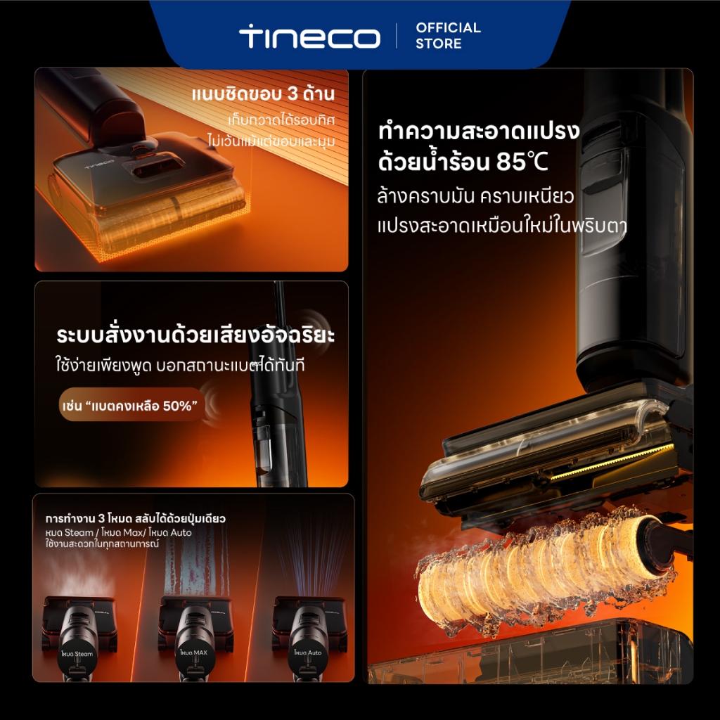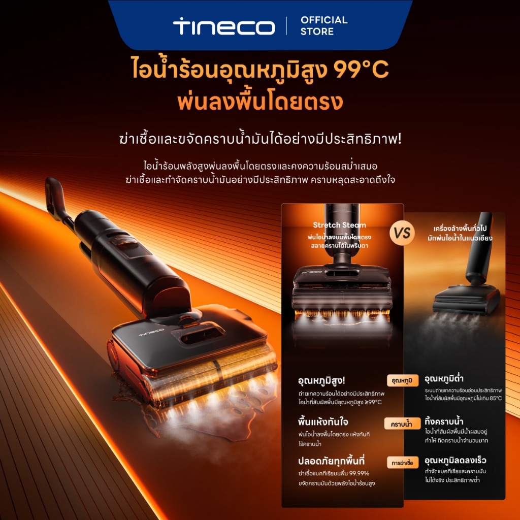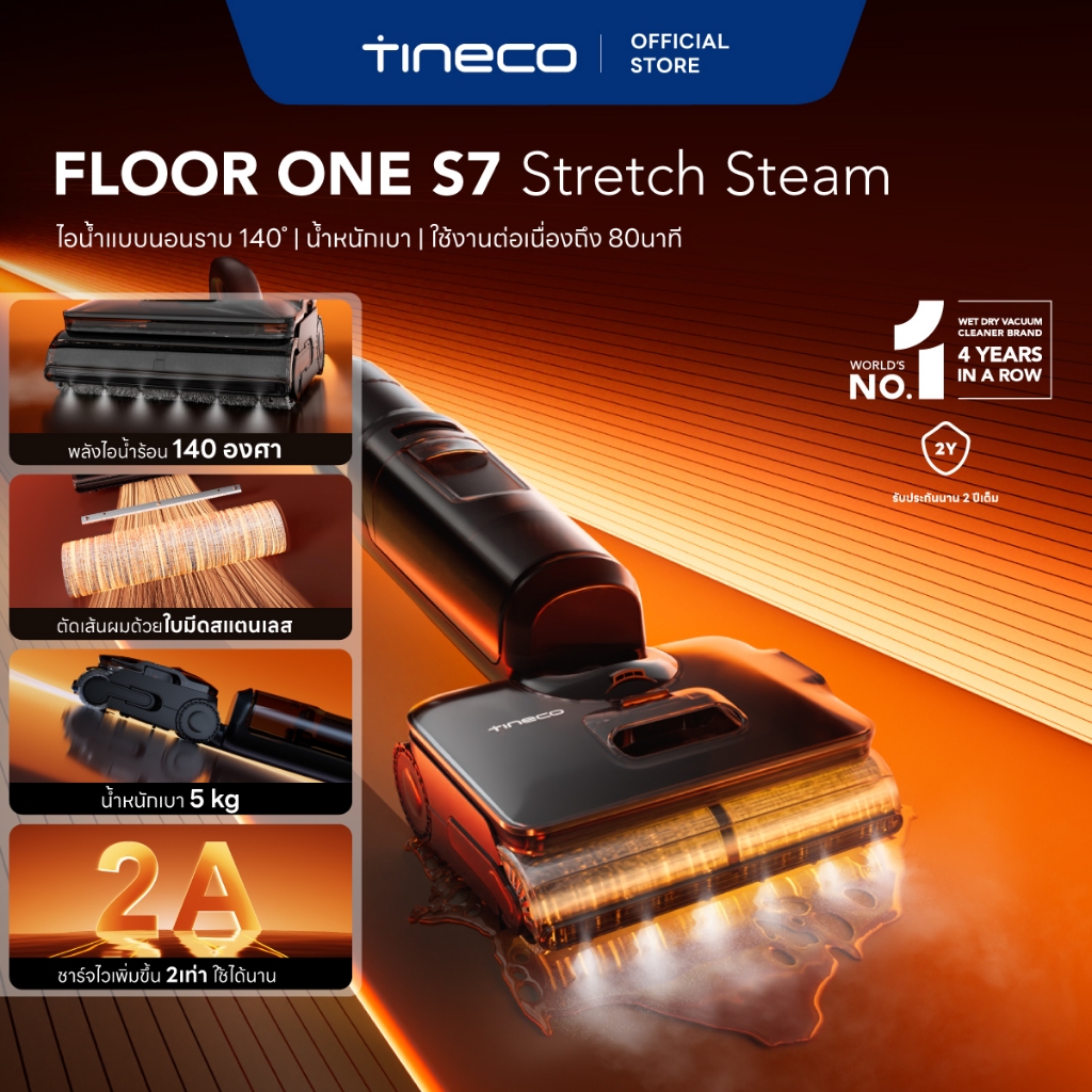 Tineco Floor One S7 Stretch Steam เครื่องล้างพื้น ไร้สาย อัจฉริยะ Floor Washer แรงดูด 22,000 Pa