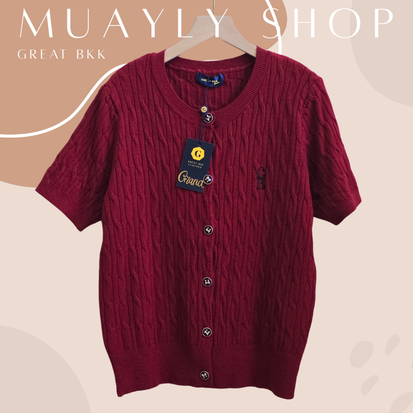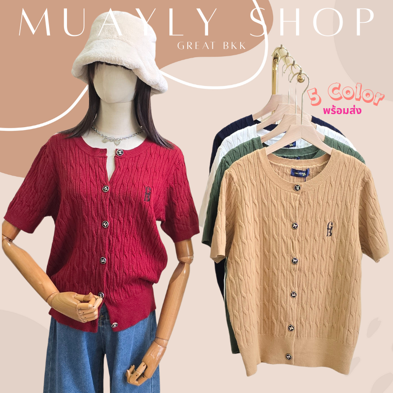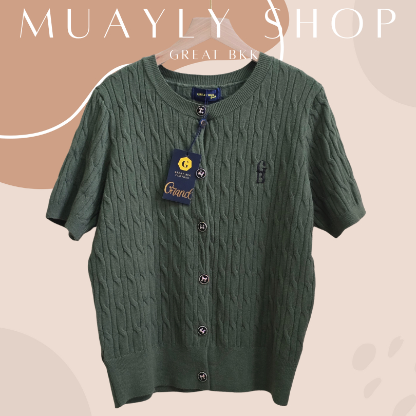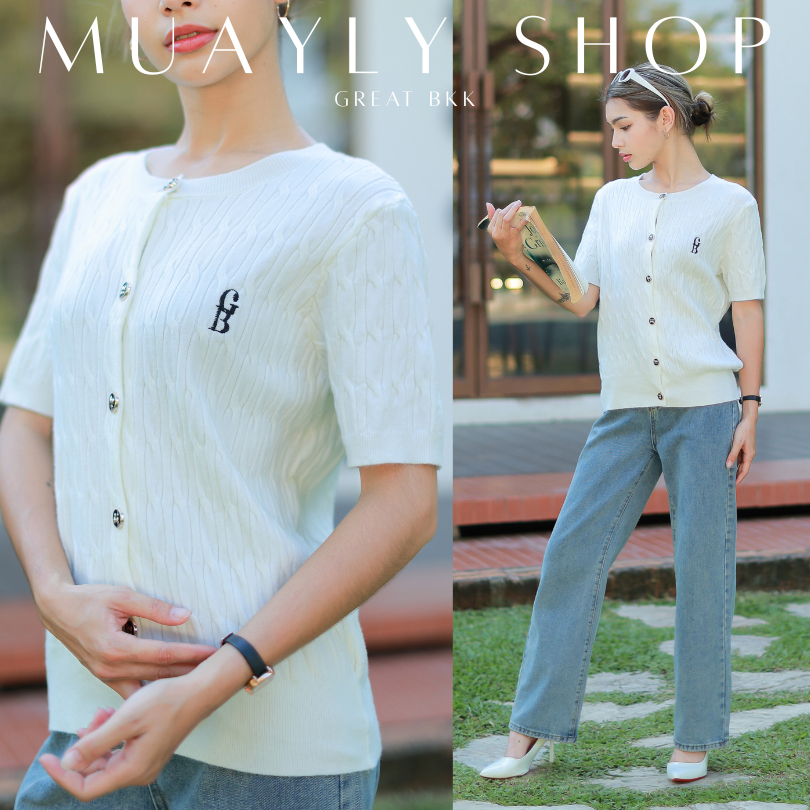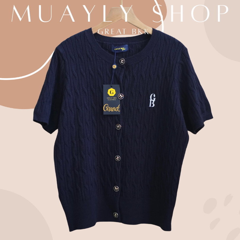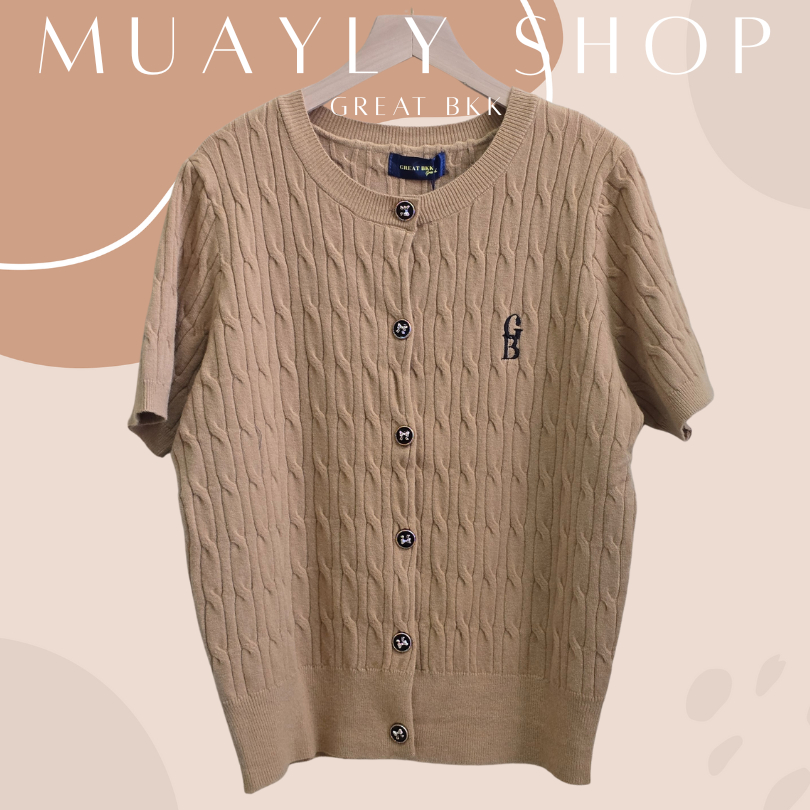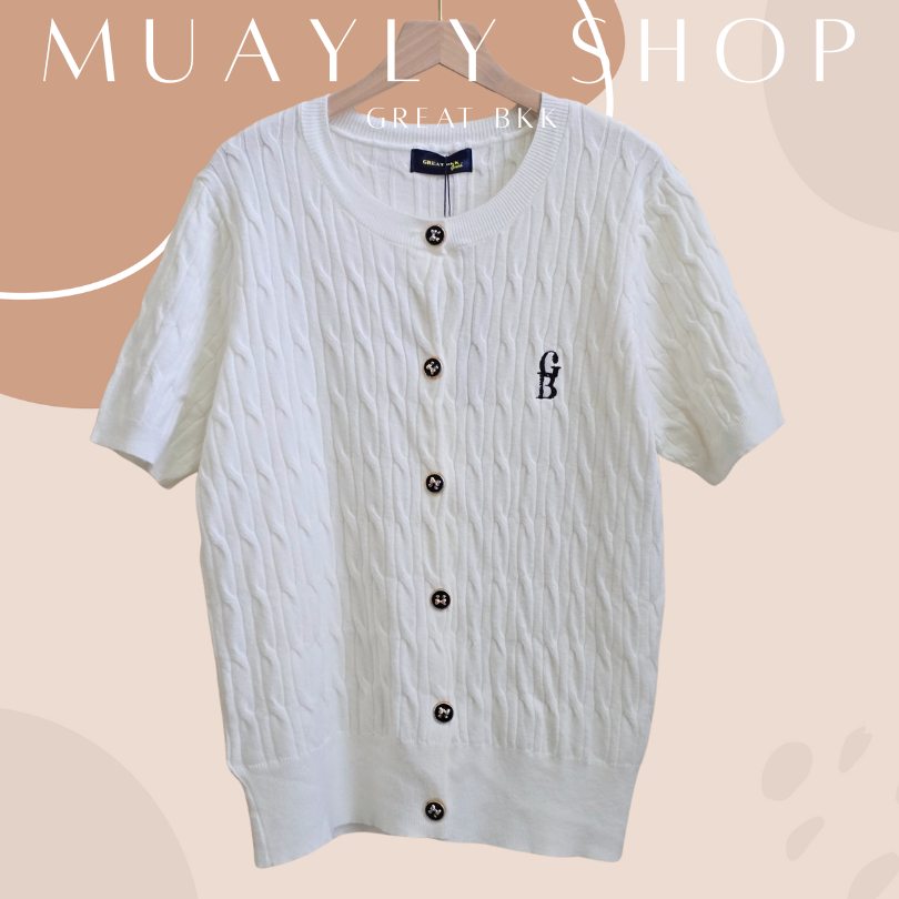 𝙉𝙚𝙬 𝙖𝙧𝙧𝙞ꪜ𝙖𝙡✨ เสื้อไหมพรม คอกลมแขนสั้น ทอลายทวิส กระดุมรูปโบว์ ปักอักษร GB ผ้าหนานุ่ม คาร์ดิแกนแขนสั้น ป้าย great bkk