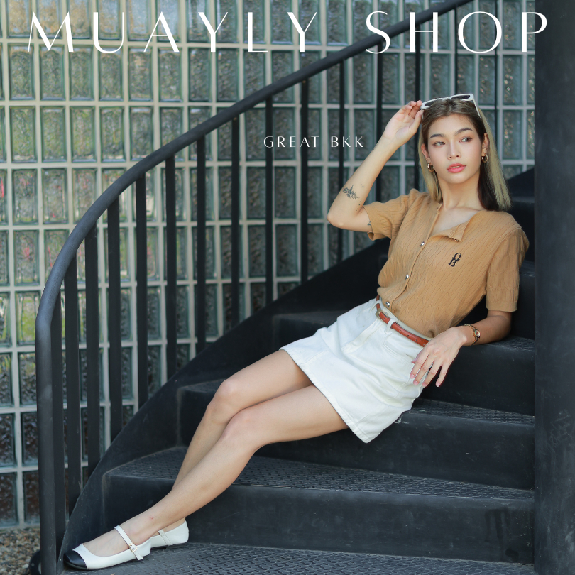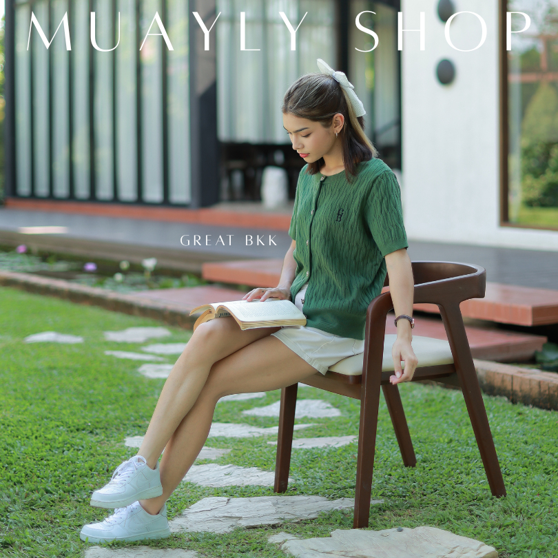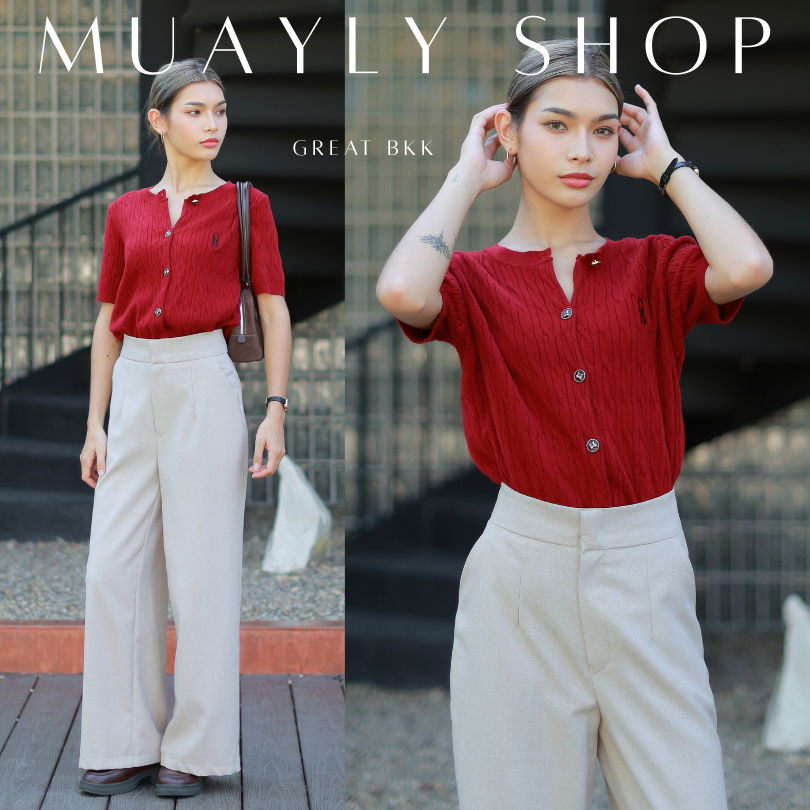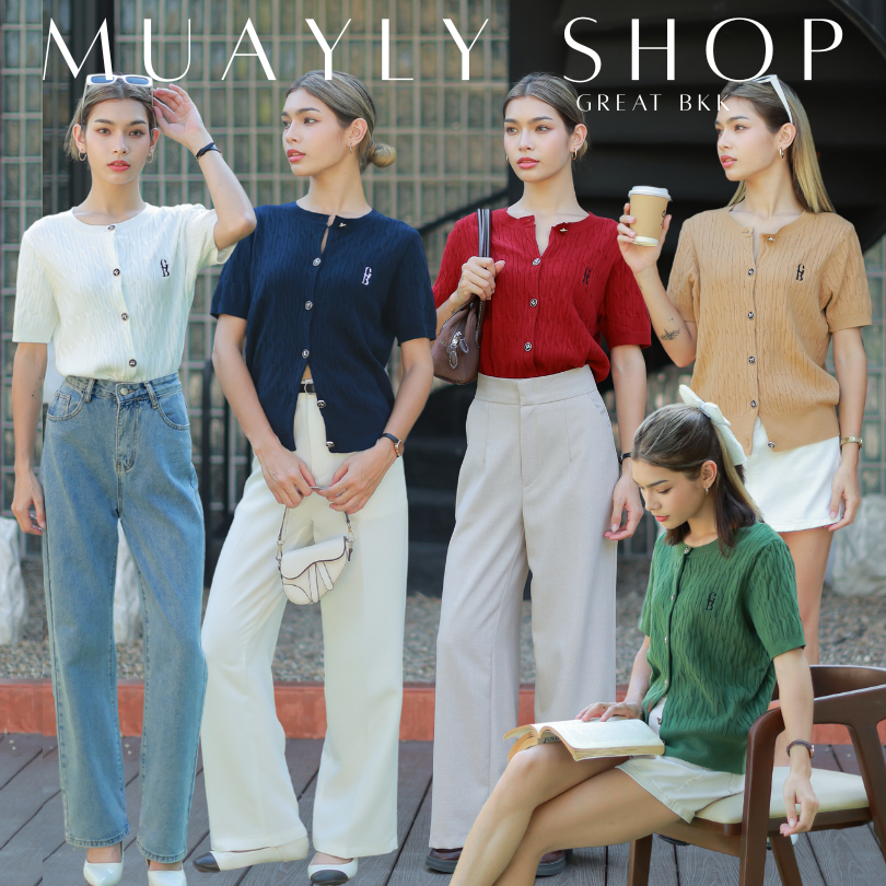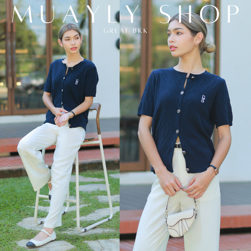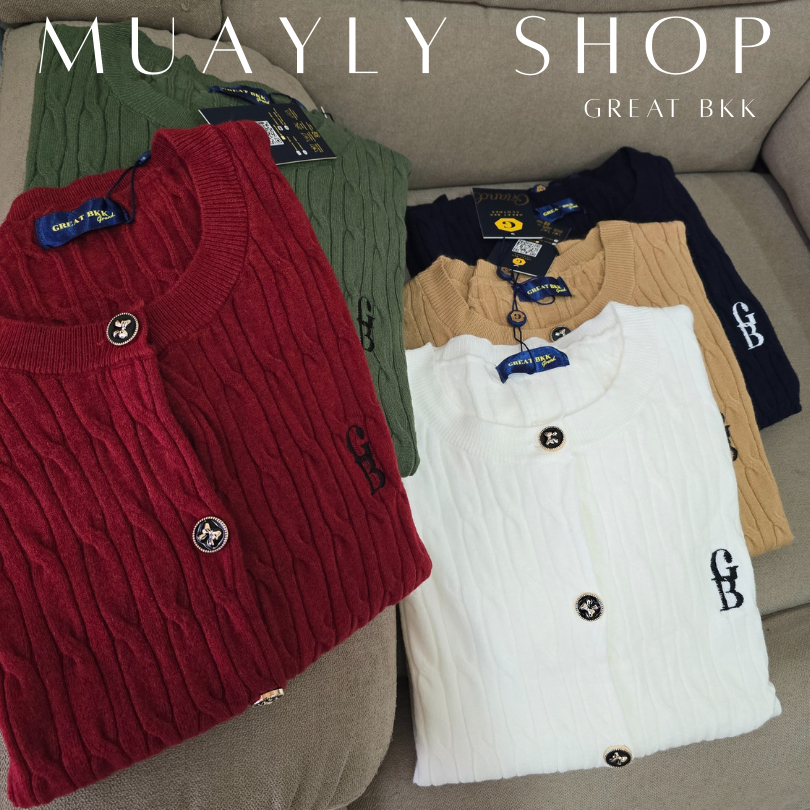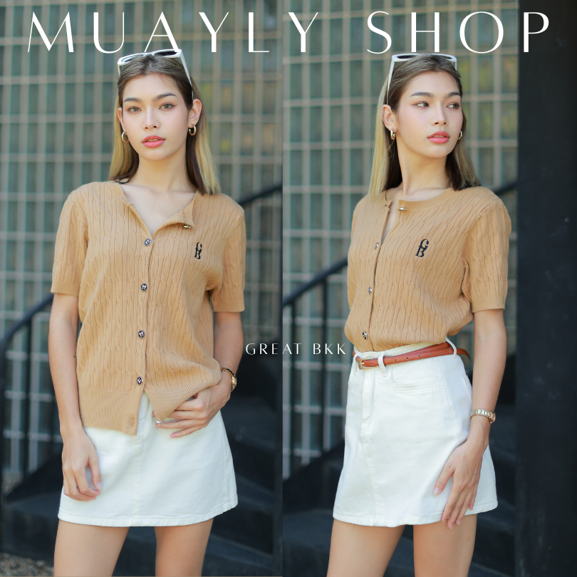 𝙉𝙚𝙬 𝙖𝙧𝙧𝙞ꪜ𝙖𝙡✨ เสื้อไหมพรม คอกลมแขนสั้น ทอลายทวิส กระดุมรูปโบว์ ปักอักษร GB ผ้าหนานุ่ม คาร์ดิแกนแขนสั้น ป้าย great bkk
