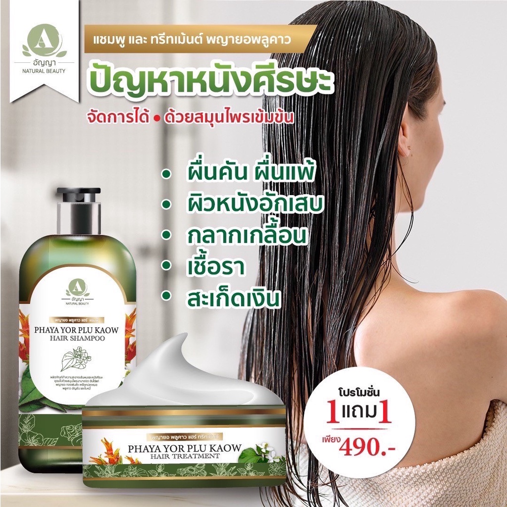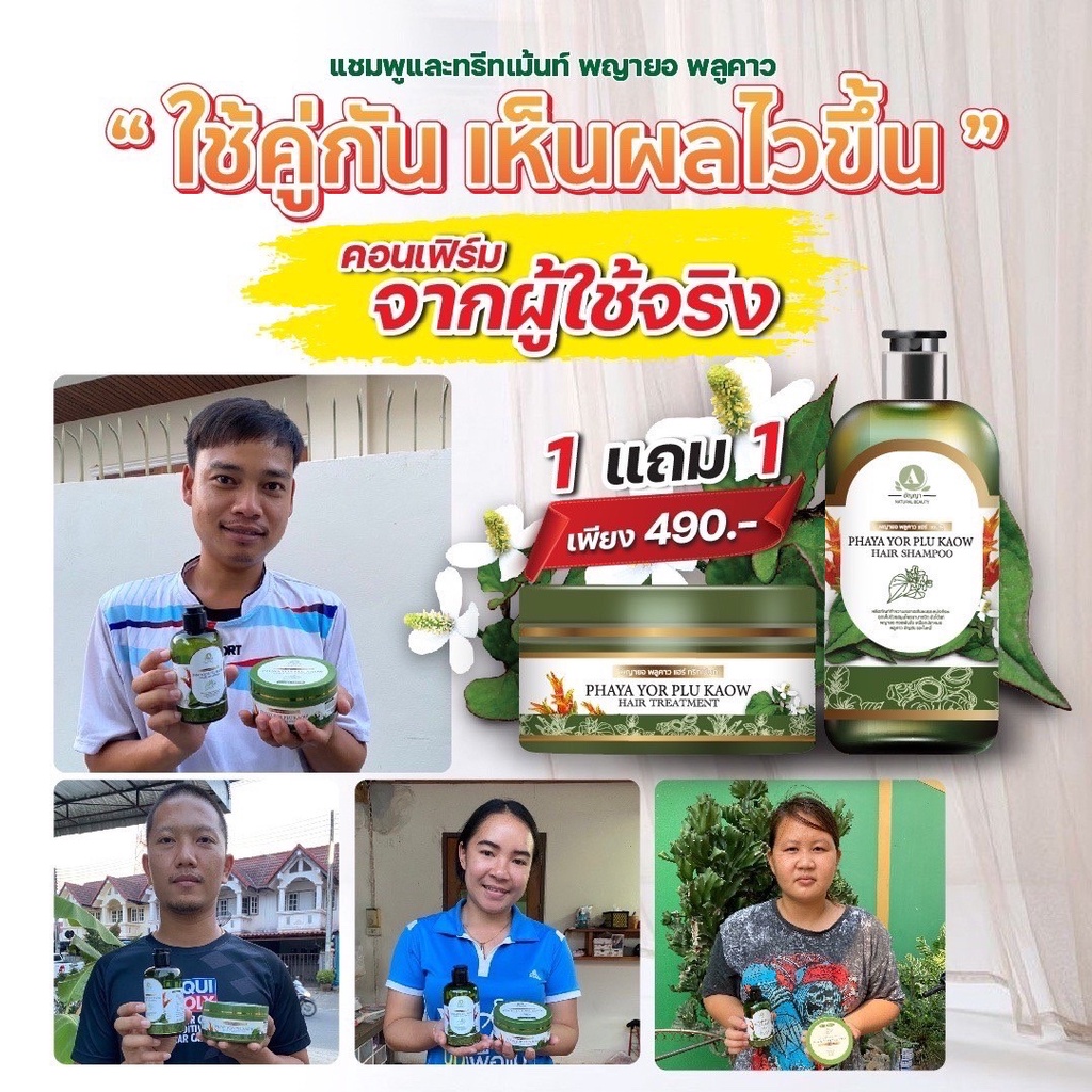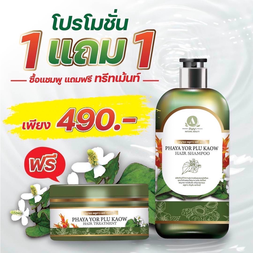แชมพู1ทรีทเมมท์1 พญายอพลูคาว แก้คัน เชื้อรา กลากเกลื้อน ผมร่วง ของแท้จากบริษัท