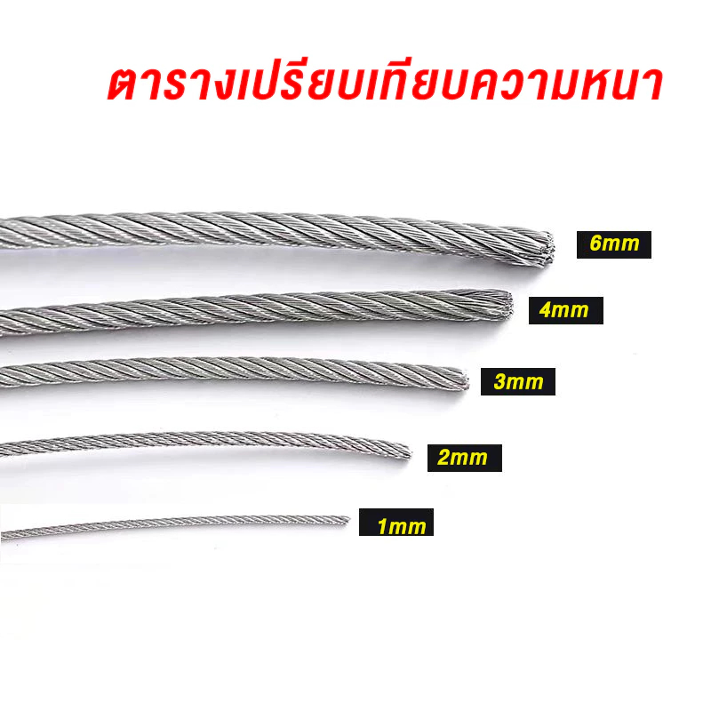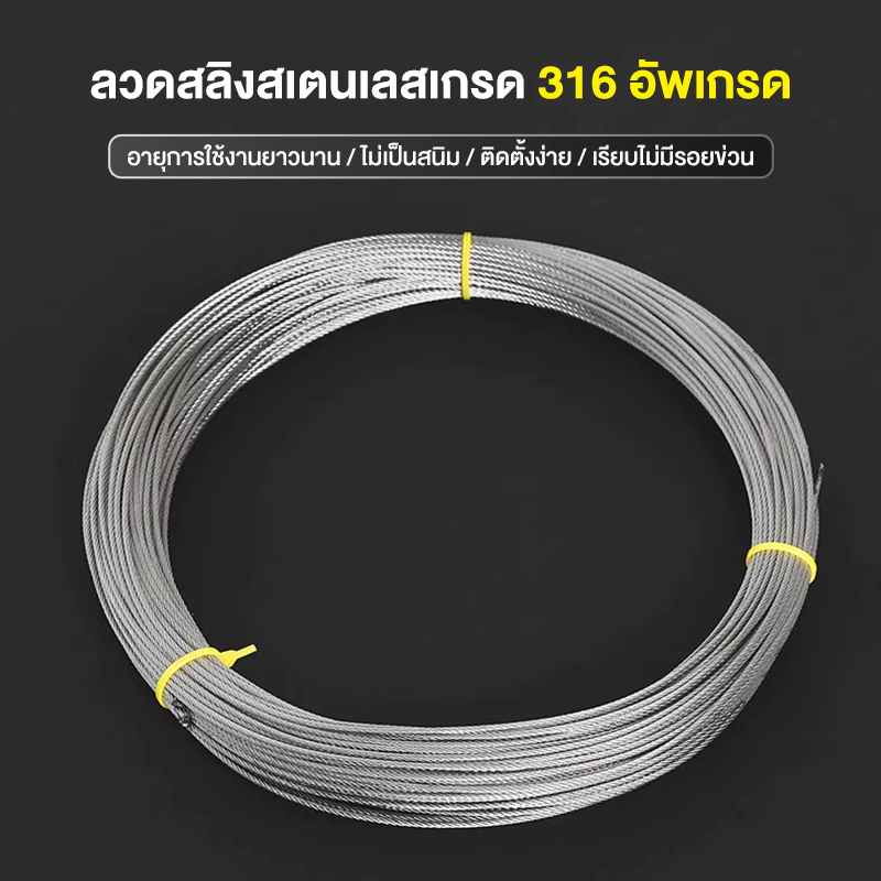 🔥50M🔥 สลิง เชือก 10M/20M/50M ขนาด 1.5,2,3,4,5,6 มม ลวดสลิงสแตนเลส Stainless Wire Rope จาก