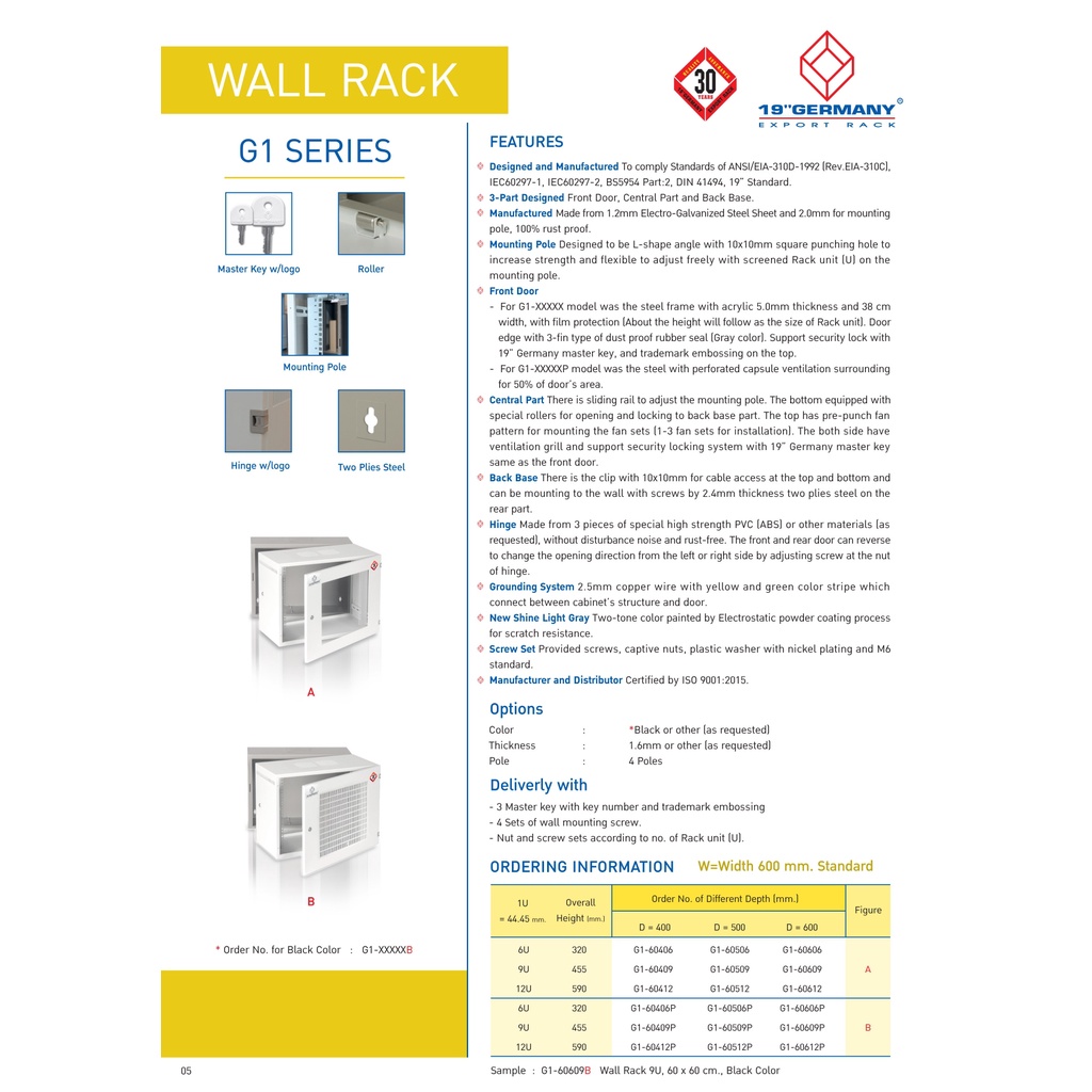 19”GERMANY ตู้แรค Wall Rack 6U รุ่น G1-60406 / G1-60506 - แบบเลือกซื้อ