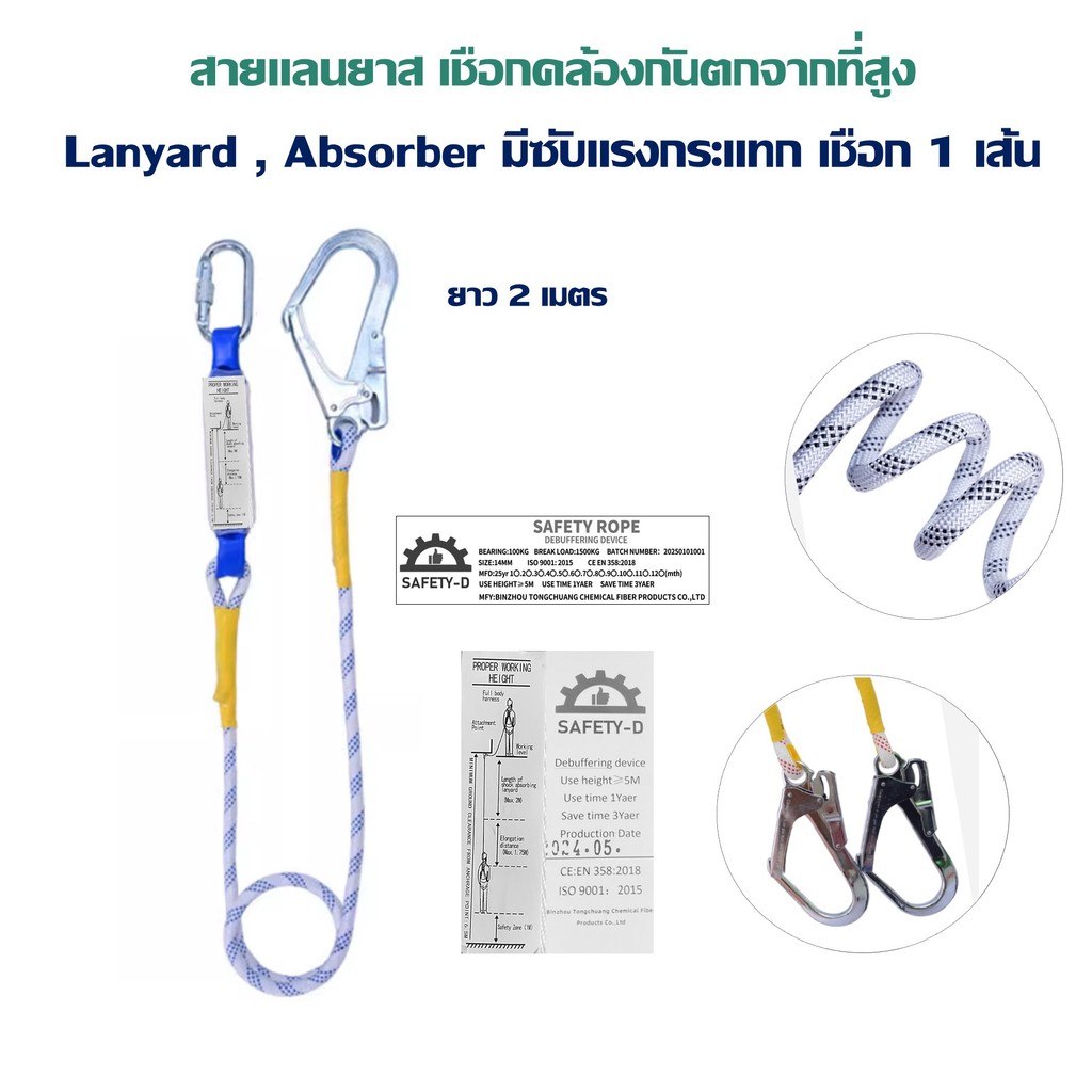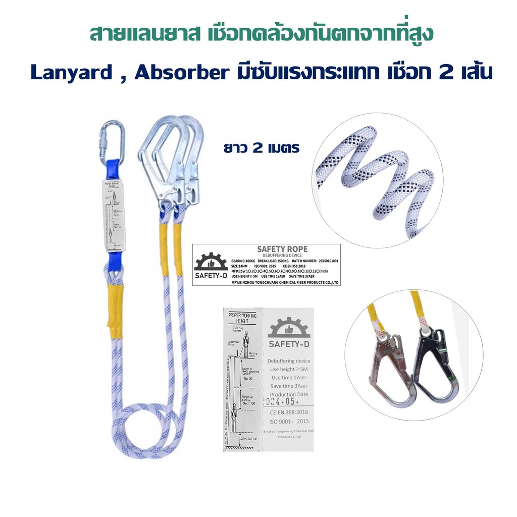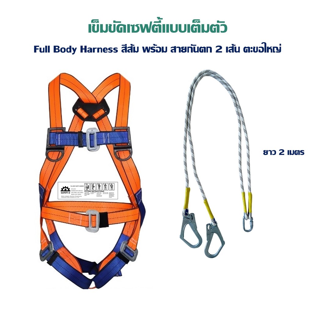 เข็มขัดเซฟตี้แบบเต็มตัว Full Body Harness พร้อมเชือกและตะขอใหญ่ ยี่ห้อ Safety-D (แท็กภาษาอังกฤษ มีใบเซอร์)
