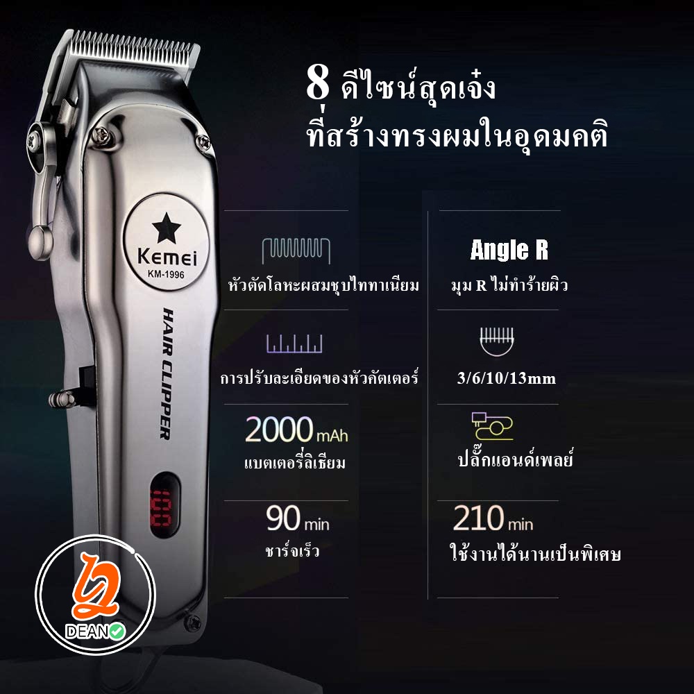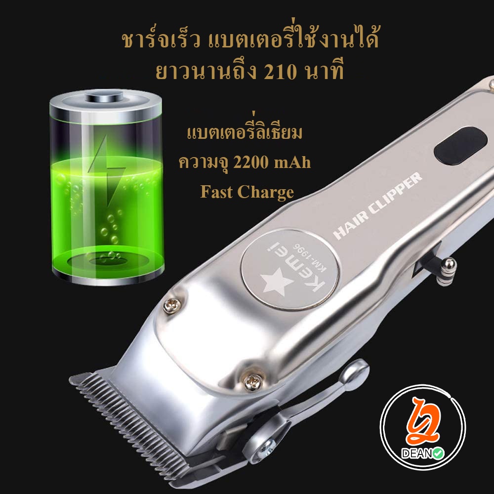 ปัตตาเลี่ยน โลหะ Kemei KM-1996 ปัตตาเลี่ยนมืออาชีพ ไฟฟ้าไร้สาย Trimmer สำหรับชายตัดผมตัดผม