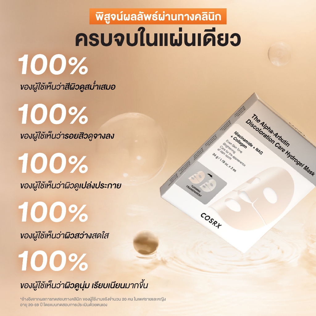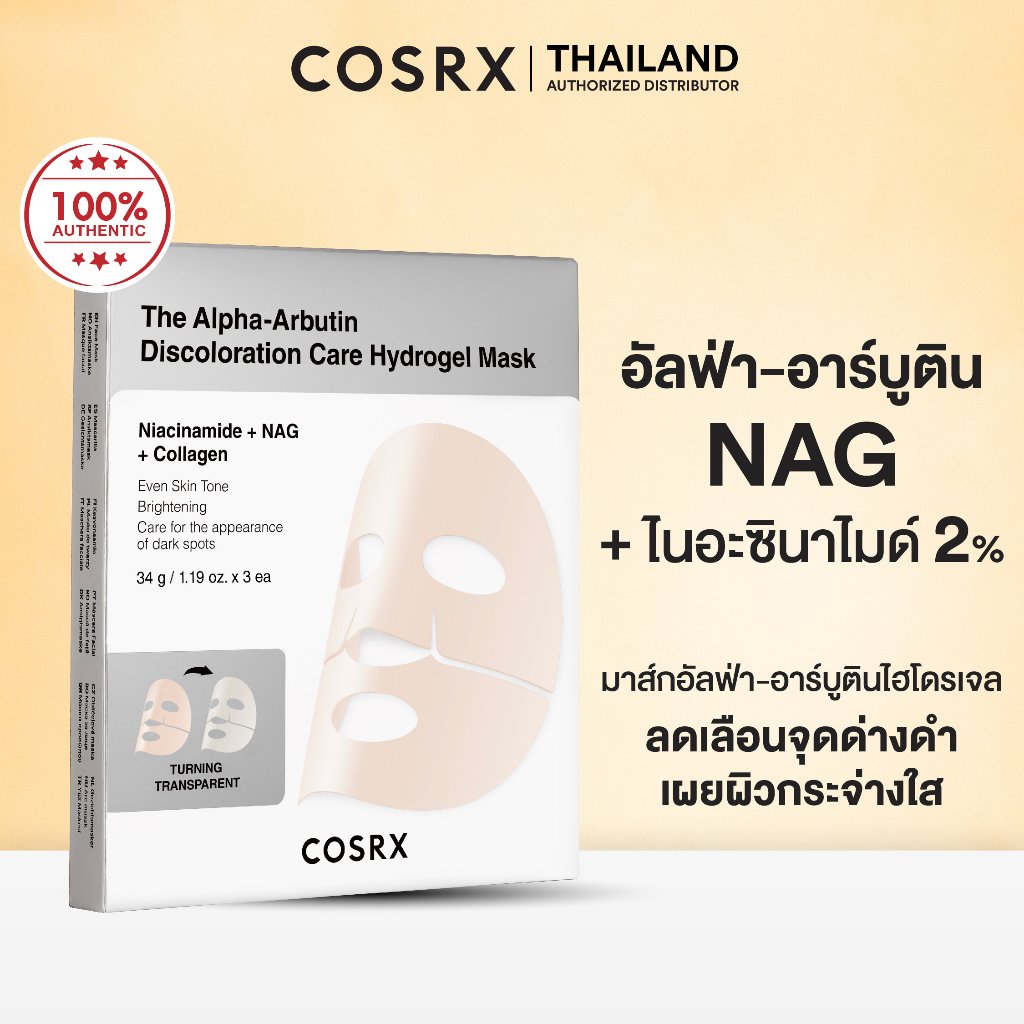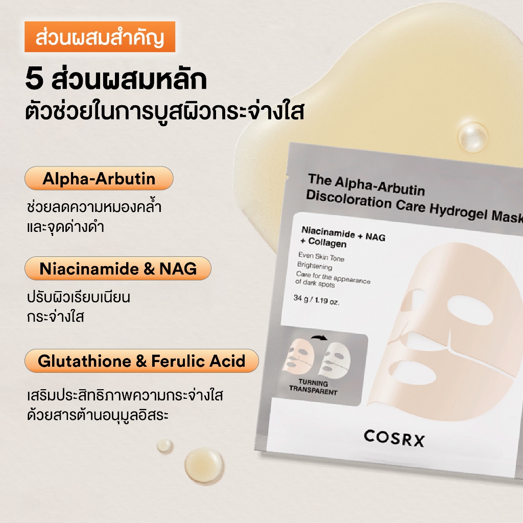 COSRX The Alpha-Arbutin Discoloration Care Hydrogel Mask ดิ อัลฟ่า-อาร์บูติน ดิสโคโลเรชั่น แคร์ ไฮโดรเจล มาส์ก