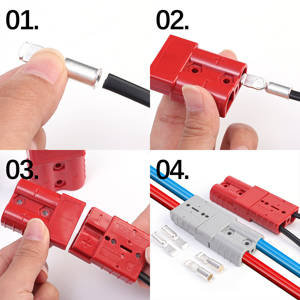 50a/120a ตัวเชื่อมต่อปลั๊กสาย Terminal 600V สีเทาสีแดง Quick Socket Connector Pins Lugs ทองแดงสําหรับ Anderson