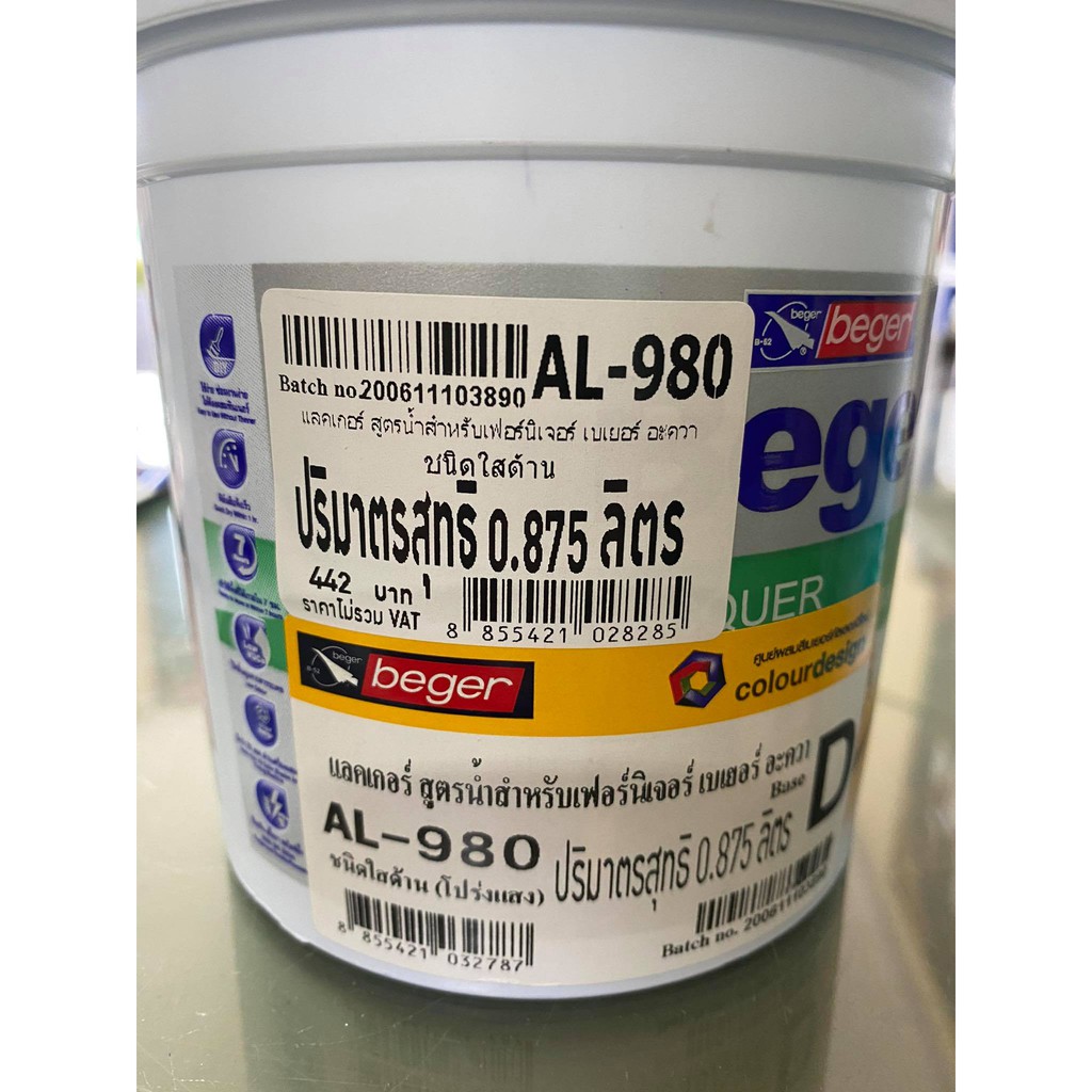 Beger Aqua แลคเกอร์ สูตรน้ำสำหรับเฟอร์นิเจอร์ (โปร่งแสง) เบเยอร์ อะควา ชนิดใสเงา AL-900 และ ชนิดใสด้าน AL-980 1/4 แกลลอน