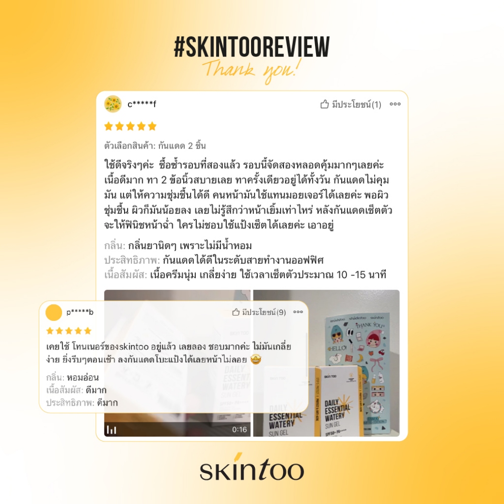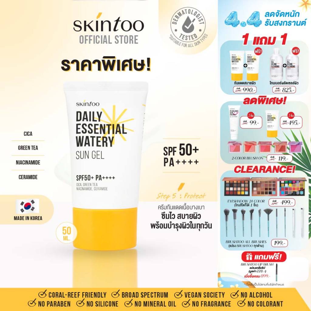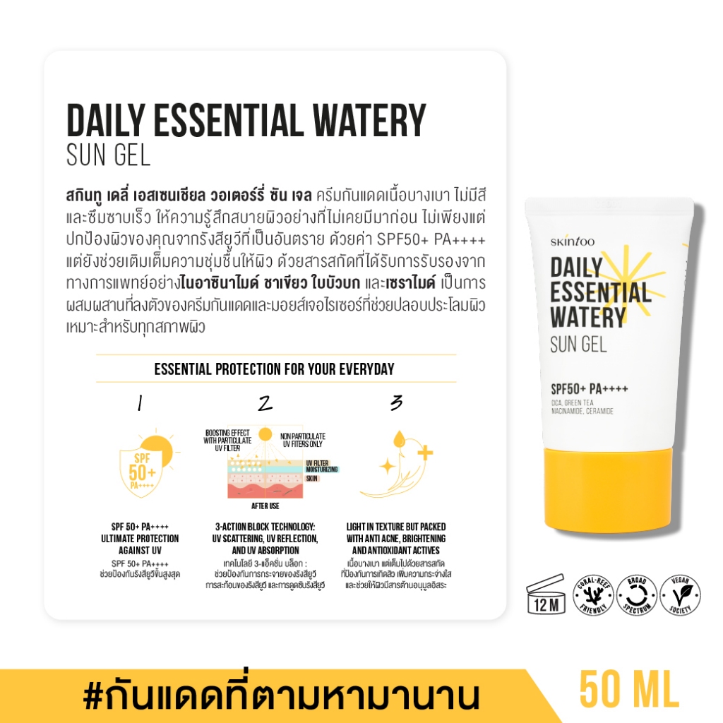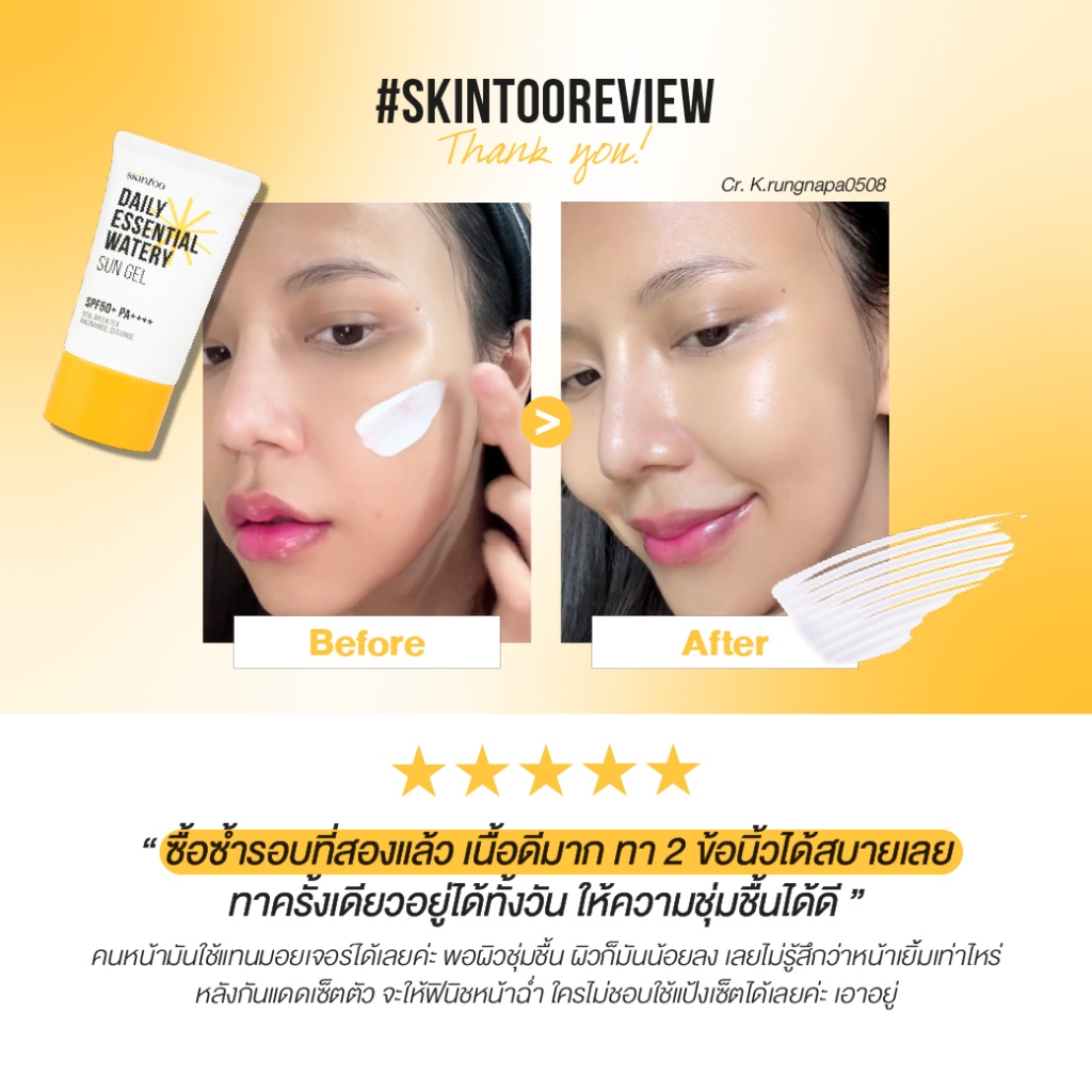ครีมกันแดดเนื้อเจล บางเบาซึมไว ชุ่มชื้น ป้องกันรังสีUVA UVB คร ีมกันแดดทาหน้า กันแดดหน้า Sun Gel SPF50+PA++++50ml SKINTOO