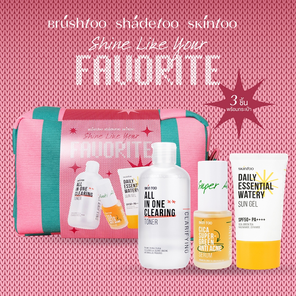 [4 ชิ้น FESTIVE *จำนวนจำกัด] FAVORITE SET - SKINTOO ALL IN ONE CLEARING TONER+CICA SERUM+SUN GEL SPF50+ PA++++