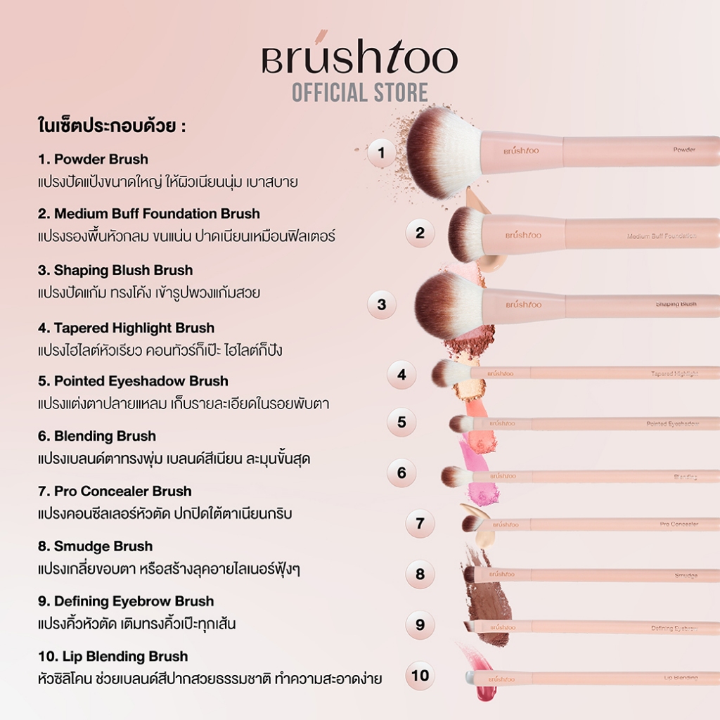 ชุดแปรงแต่งหน้า 10 ชิ้น พร้อมกระเป๋า 2in1แปรงรองพื้น แปรงปัดแก ้ม แปรงปัดแป้ง แต่งหน้า Masterclass Brush Set BRUSHTOO