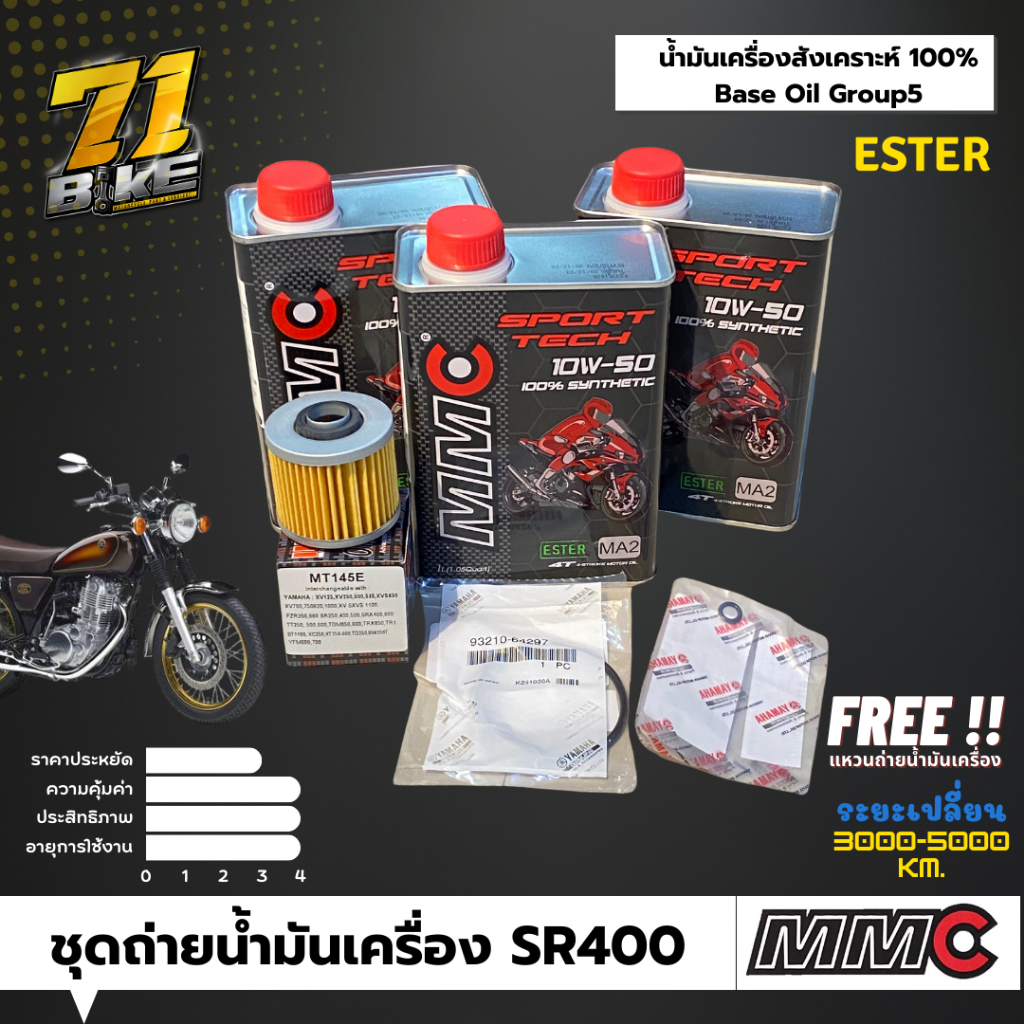 ชุดถ่ายน้ำมันเครื่อง SR400 SR500 MMC 10W50 100% SYNTHETIC