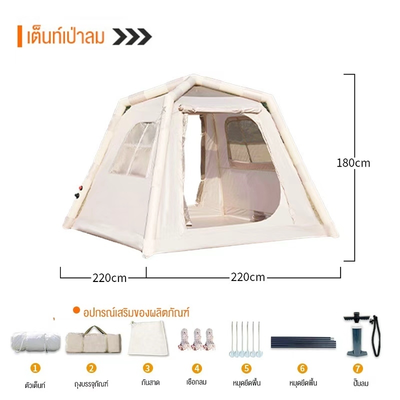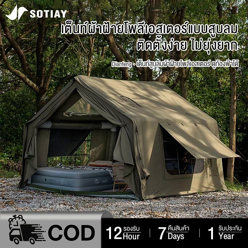 Sotiay พร้อมส่ง⚡️Mountain เต็นท์เสาลม เต็นท์เป่าลม เสา3เส้น มีช่องใส่ท่อแอร์ Riancoverเคลือบไวนิลดำ