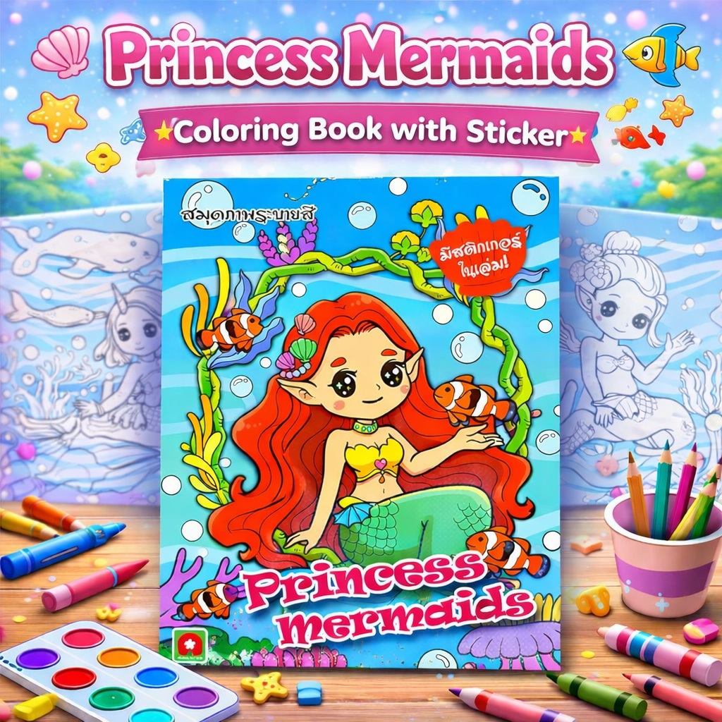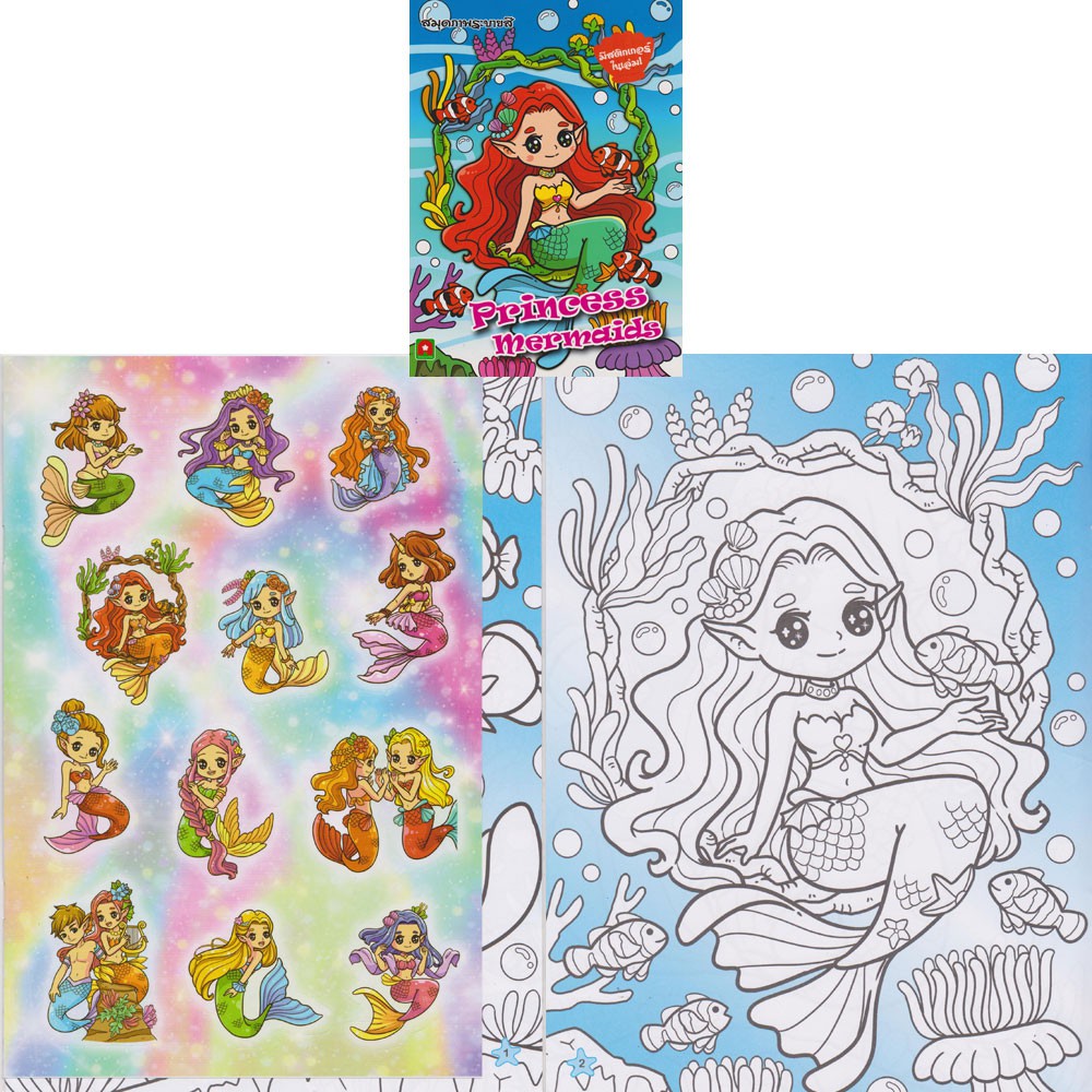 Aksara for kids หนังสือเด็ก ระบายสี สติกเกอร์ Princess Mermaids