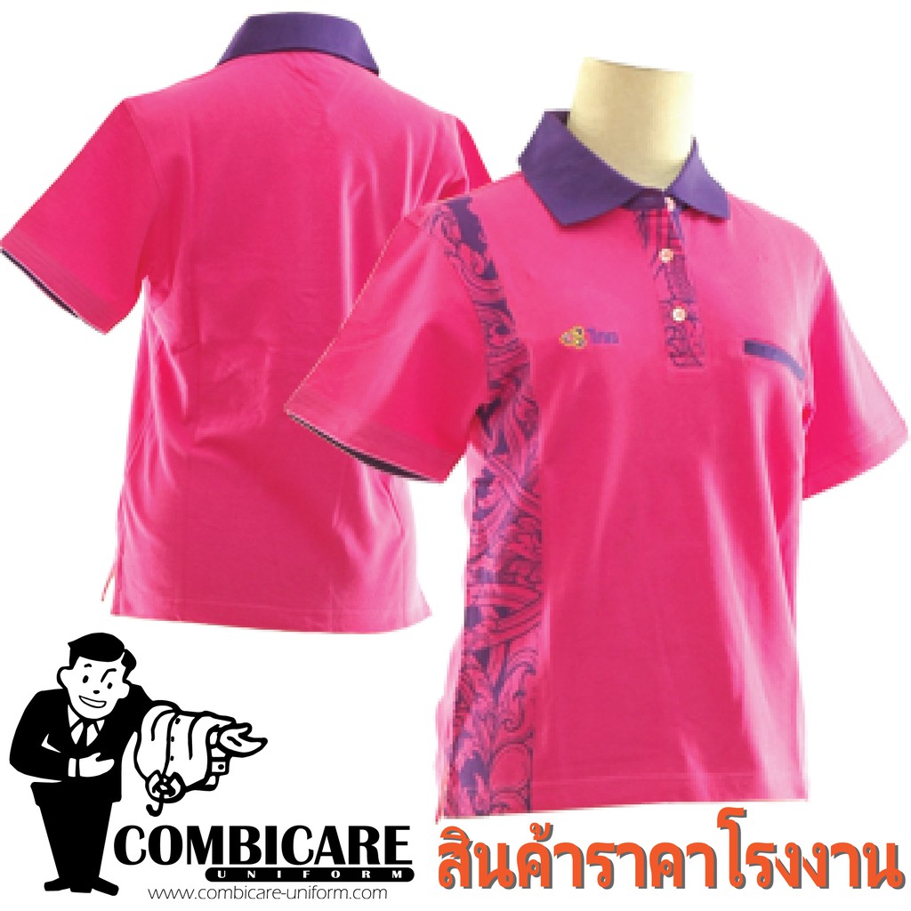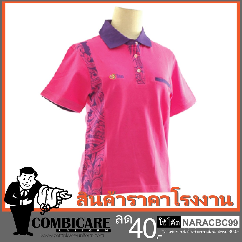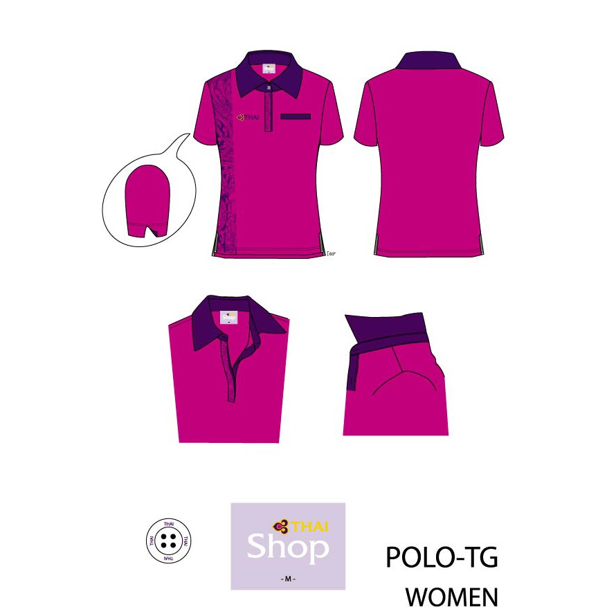 เสื้อโปโล การบินไทย สีชมพู มีสกรีนลาย และกระเป๋าเจาะหน้าอกด้านซ้าย