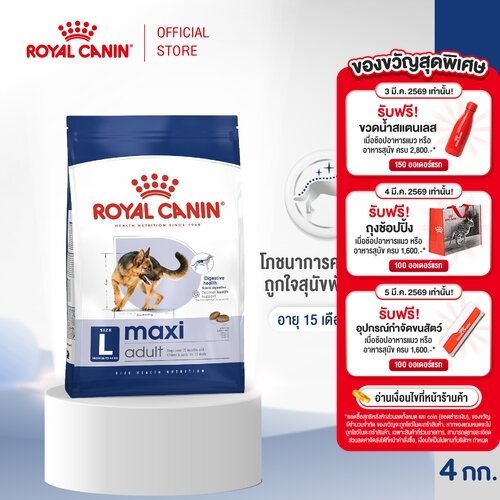 Royal Canin Maxi Adult 4kg อาหารเม็ดสุนัขโต พันธุ์ใหญ่ อายุ 15 เดือนขึ้นไป (Dry Dog Food, โรยัล คานิน)