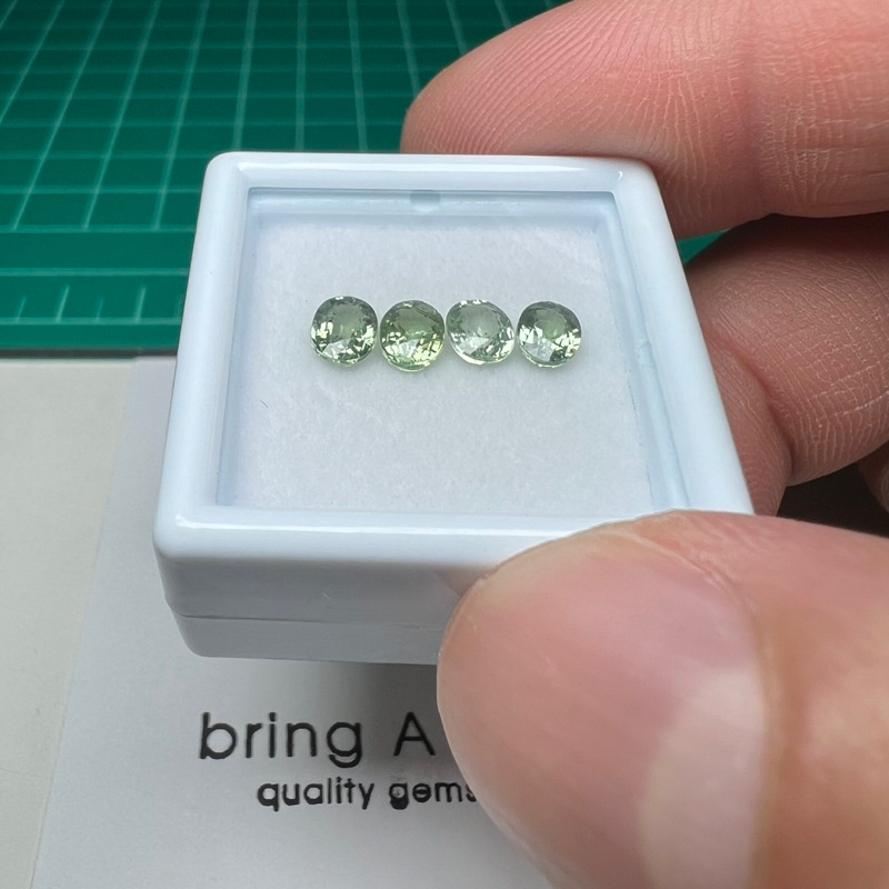 เขียวส่อง (green sapphire) ขนาด 5x4 มม. พลอยธรรมชาติ พลอยสีเขียวสวย ใส สะอาด