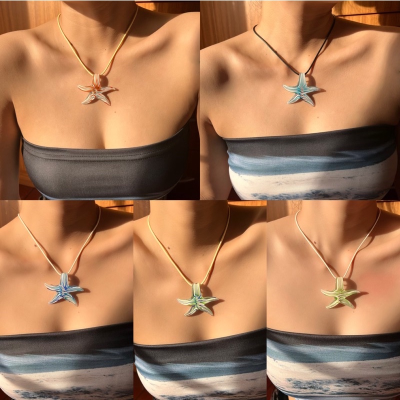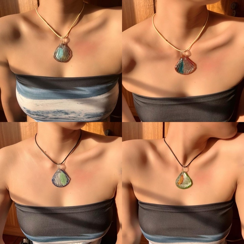 (สั่งในไลฟ์สด🔥ลด50%)✨แจ้งลายที่ชอบในแชท✨Glass pendant necklace vintage 90s 🐚