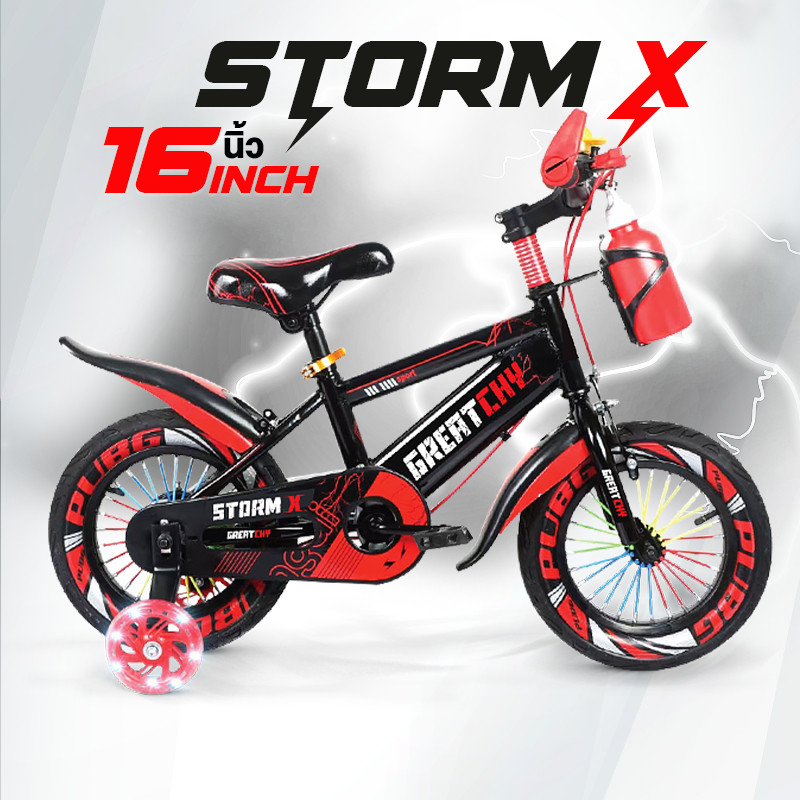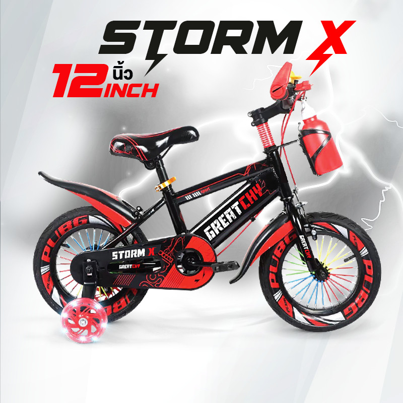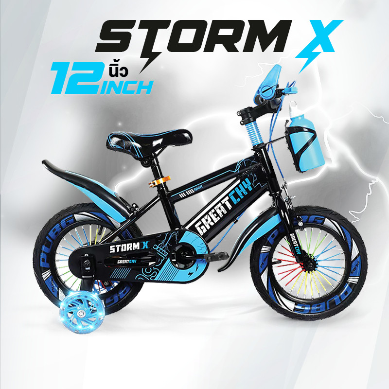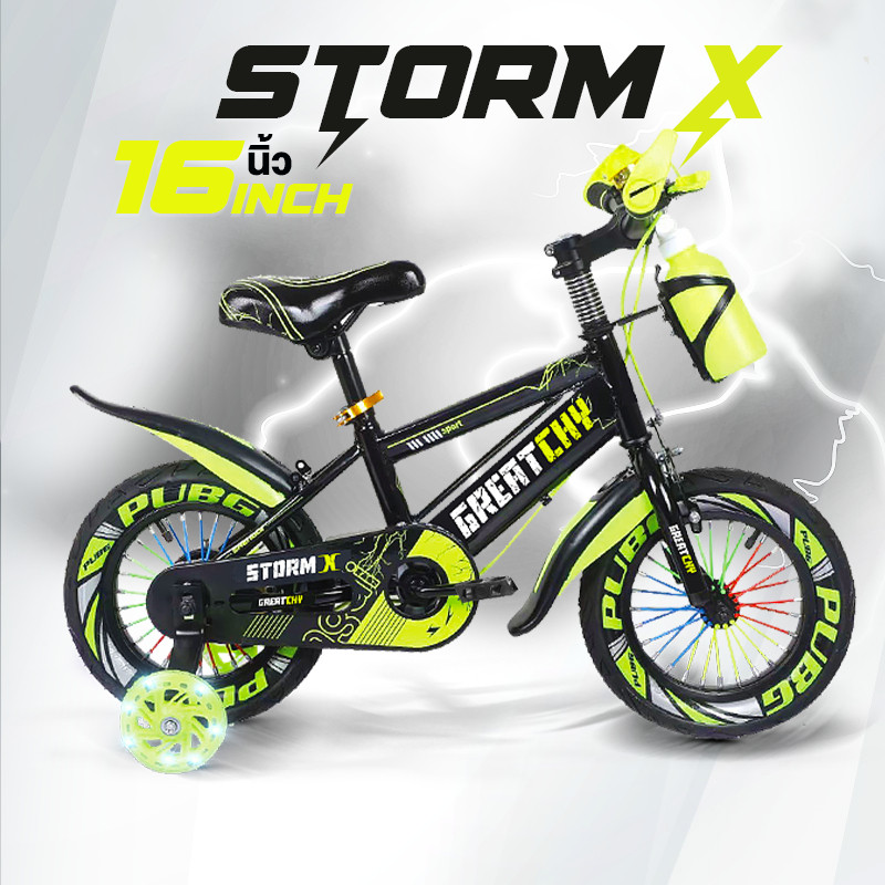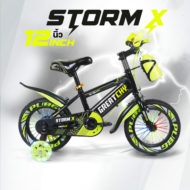 Greatchy จักรยานเด็ก Storm X จักรยานเสือภูเขา 12/16/18นิ้ว ยางเติมลม ยางมีลาย ล้อเสริมมีไฟ กระบอกน้ำ